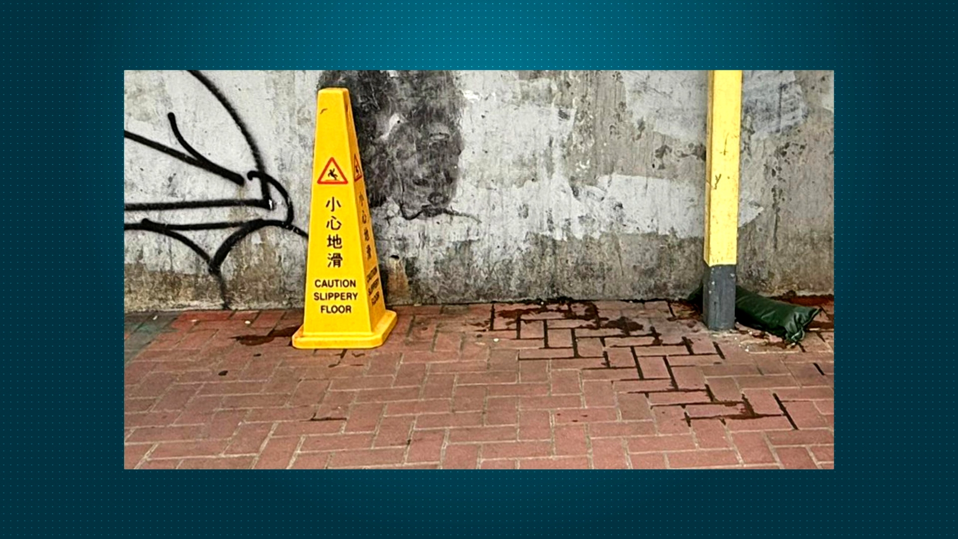 街坊梁先生昨日(22日)向東張主持王嘉慧表示,曾目擊有老人因地面濕滑跌倒,連買的餸菜都弄髒不能食用。
