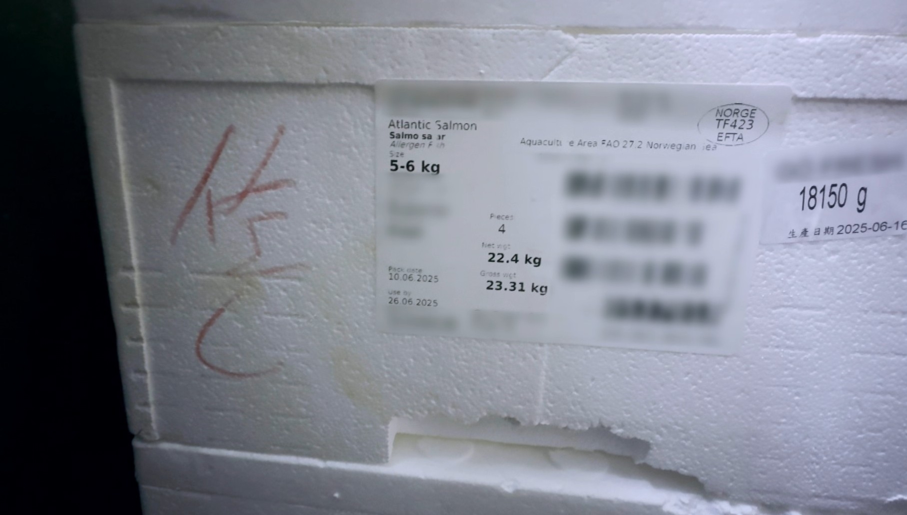 攝製隊亦有到過壽司店不同分店,了解運貨過程。其中位於佐敦的分店,見到發泡箱寫上挪威三文魚,有齊出產地和生產日期!惟未發現有水貨客送來壽司刺身。