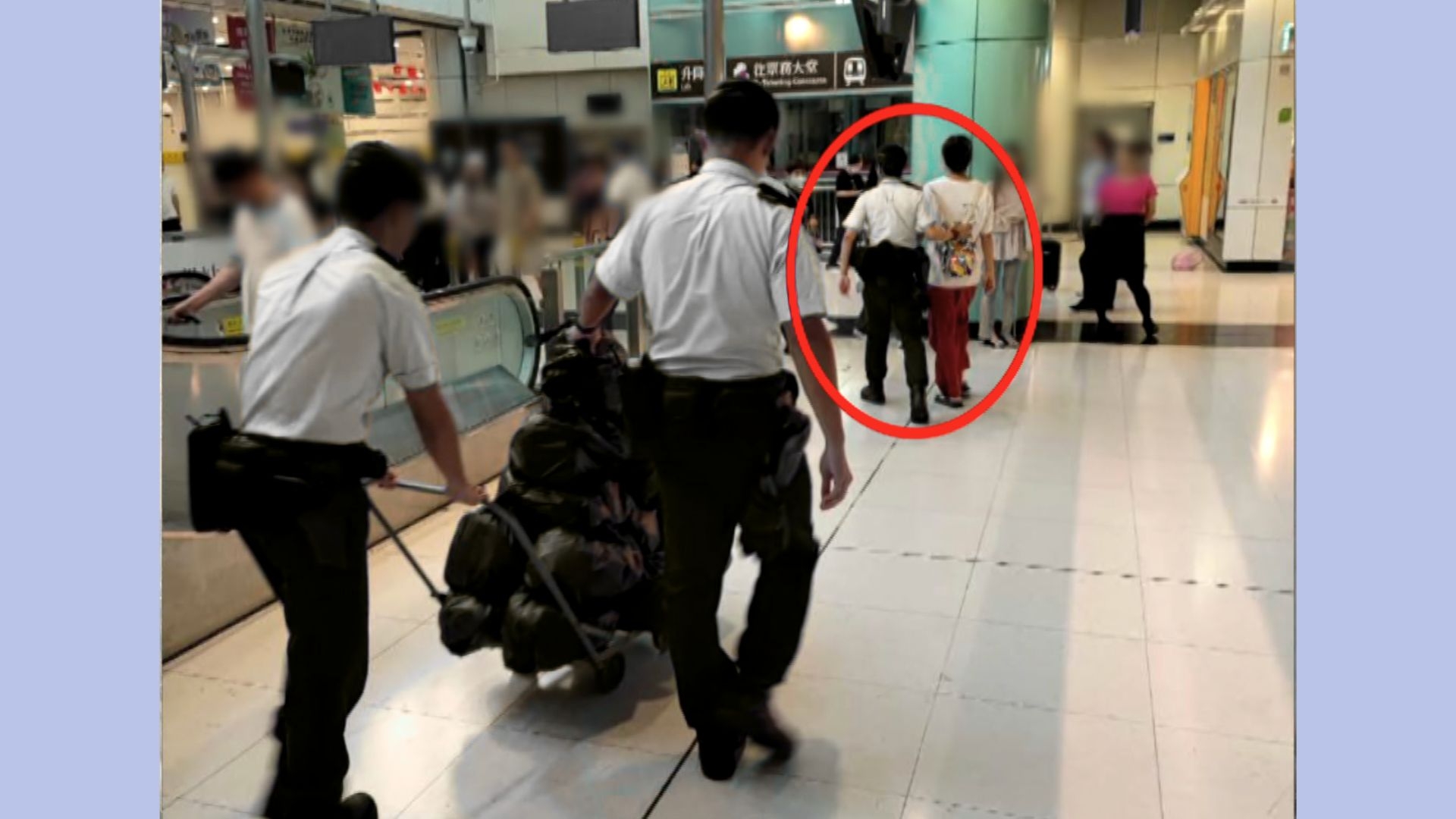 一名穿啡衫的女子疑為蛇頭,不斷截停的士,向司機聲稱可加錢載貨。但有的士司機因貨物數量龐大且不整潔而拒載。