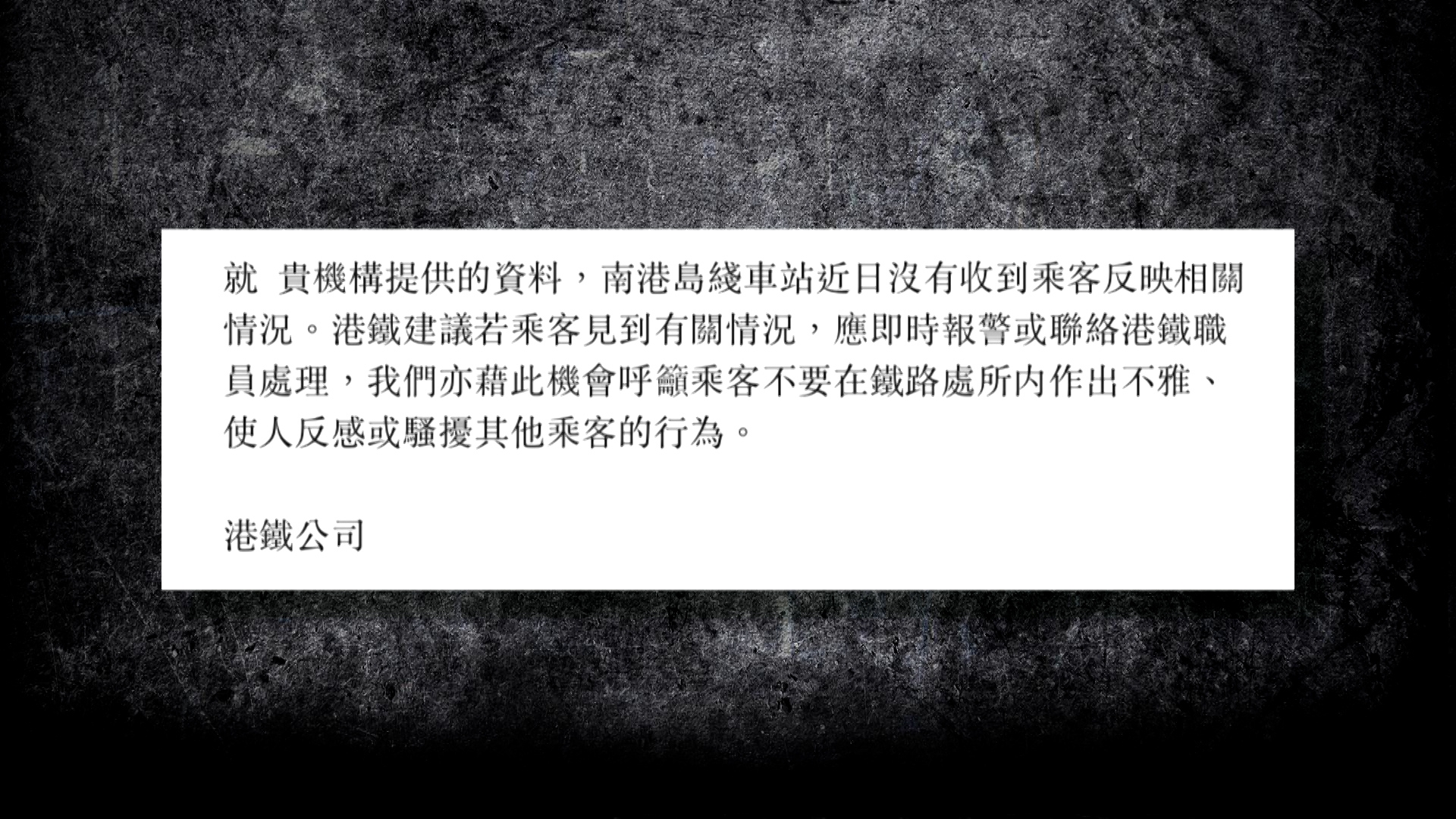 東張向港鐵查詢,獲回覆指,近日沒有收到乘客相關投訴,建議乘客見到相關情況,應即時報警或聯絡港鐵職員處理。