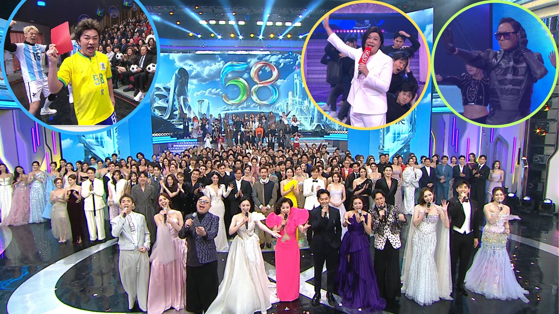 TVB58周年台慶,小生花旦落力演出,福祿壽演出當然成為焦點,今年更大膽向總經理抽水,還玩埋Man姐和古生,全場興奮起哄。