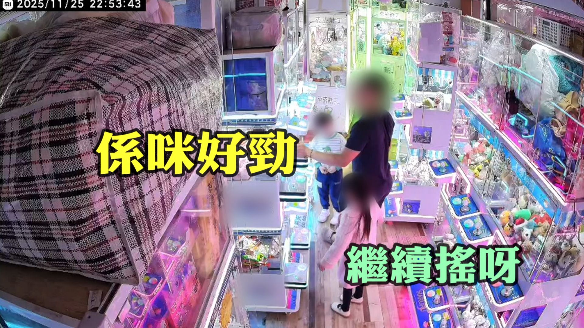 夾公仔機店東向東張提供片段指,日前一名父親帶子女進入店內,期間大力搖晃公仔機導致獎品跌落,女兒成功取走。父親更自豪向子女稱:「我係咪好勁!」女兒則叫他繼續搖。之後其兒子也有樣學樣,不斷搖晃其他機台,甚麼搖到移位,其父視若無睹。