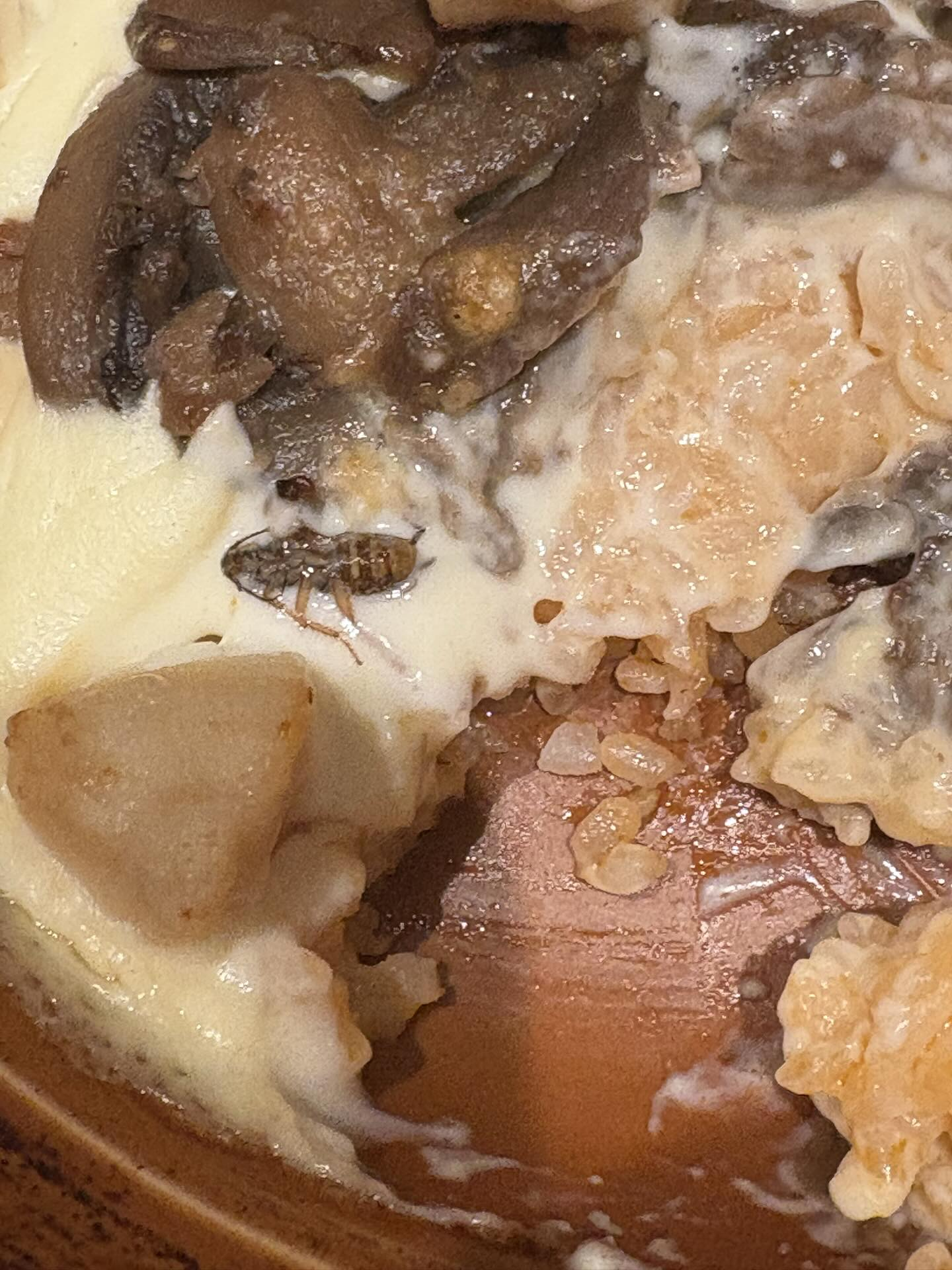 《東張+》日前報道某連鎖平價西餐廳焗飯,內藏保護色小強一事,有網民上載餐廳相片,應該是正在進食餐廳一款平價名物「多利亞焗飯」,不過在肉料旁邊,驚見一隻小強已混入焗飯之中,衛生情況令人嘔心。
