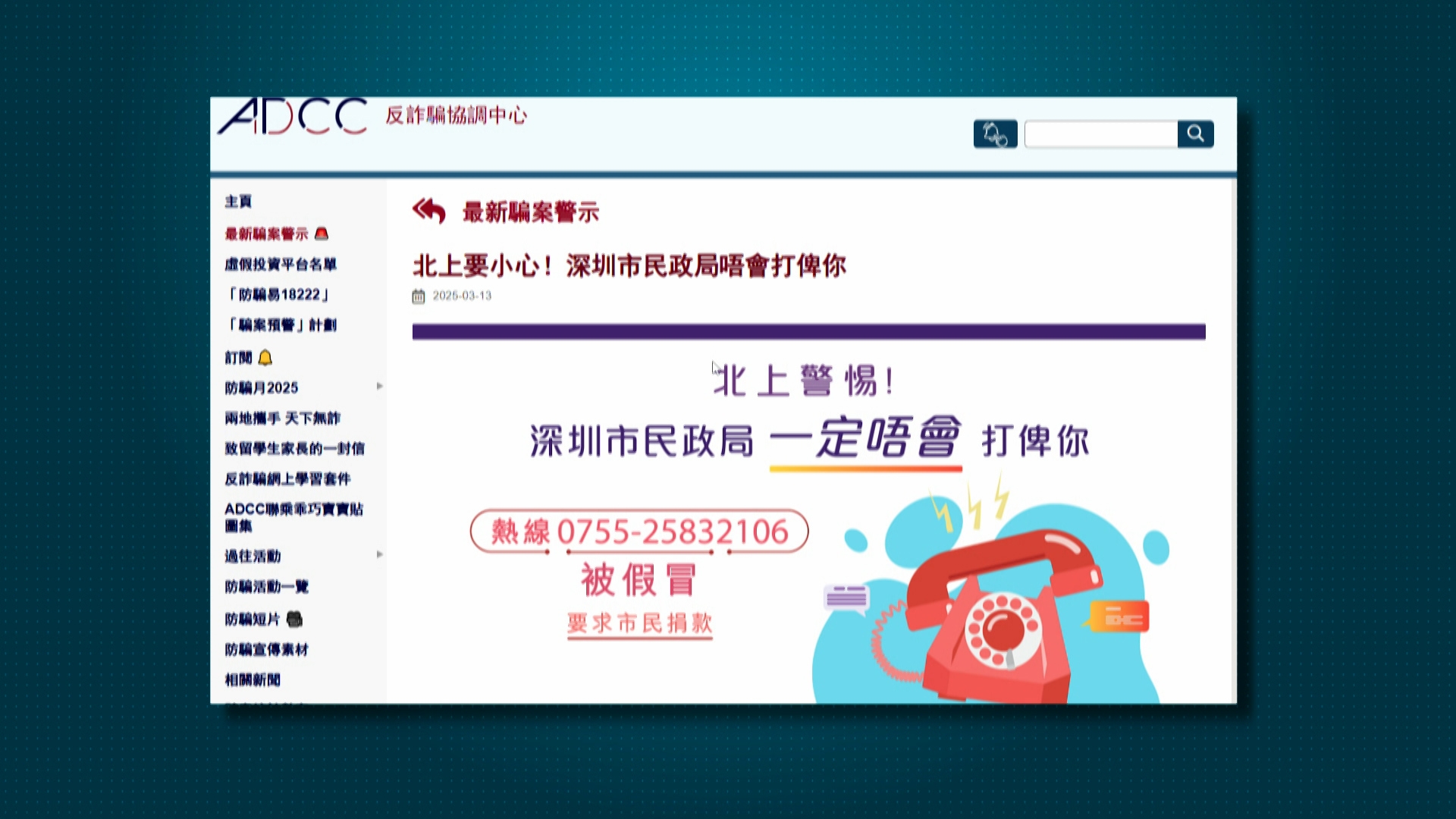 為提醒公眾,本港反詐騙協調中心早前亦已發帖宣傳強調深圳市民政局從不會致電市民呼籲大眾提高警惕。