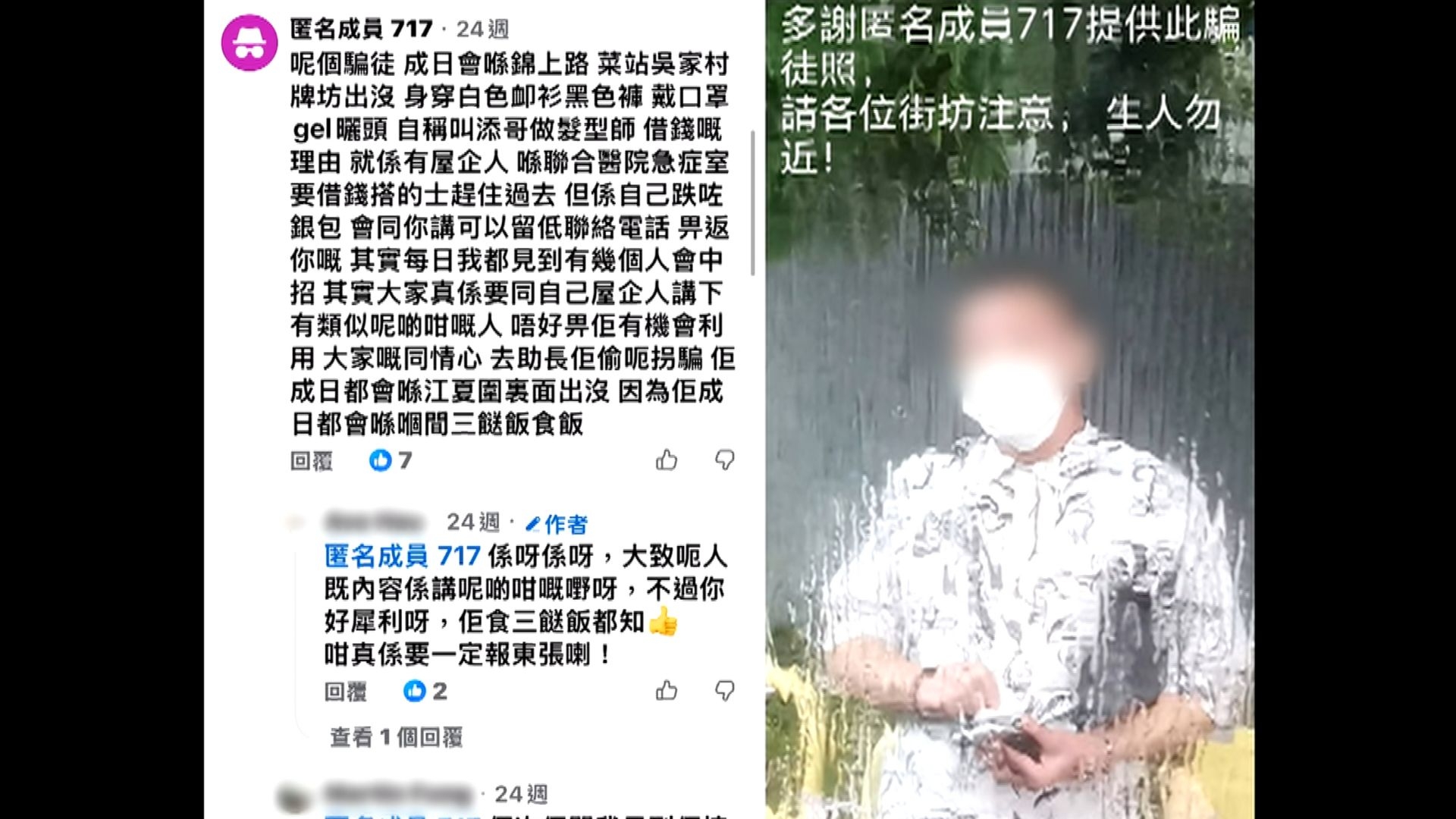 鄧生指,該男子在區內已聲名狼藉,網上亦有有曝光其行為。鄧生認識的朋友有5、6人受騙,給過他錢。