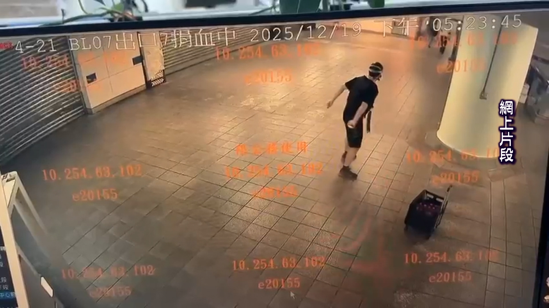 疑犯繼續持刀傷人,並且闖入商場藏匿。 網上流傳影片見到,有香港遊客在商舖內躲避,又驚呼同行2少女過來躲避。