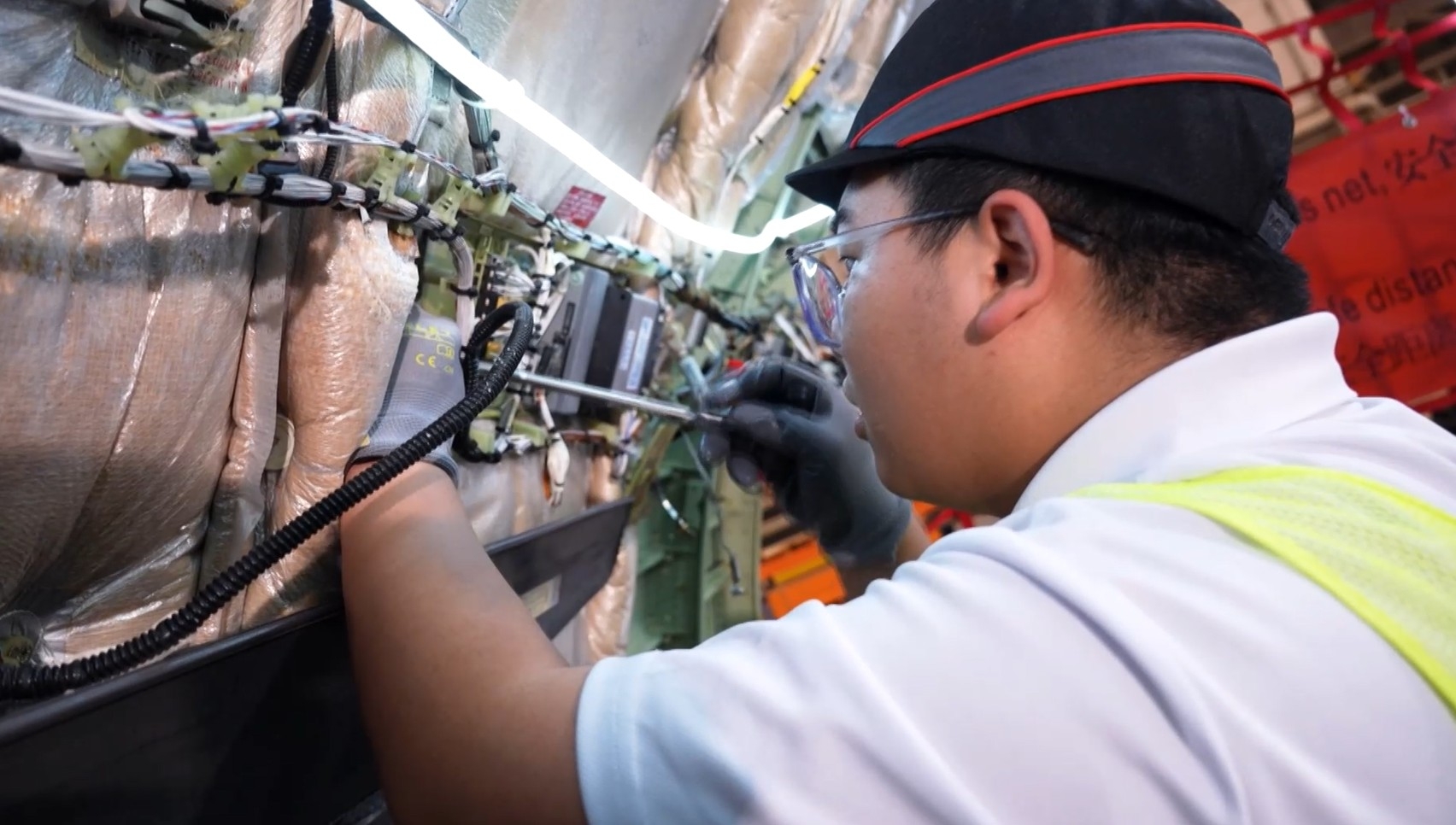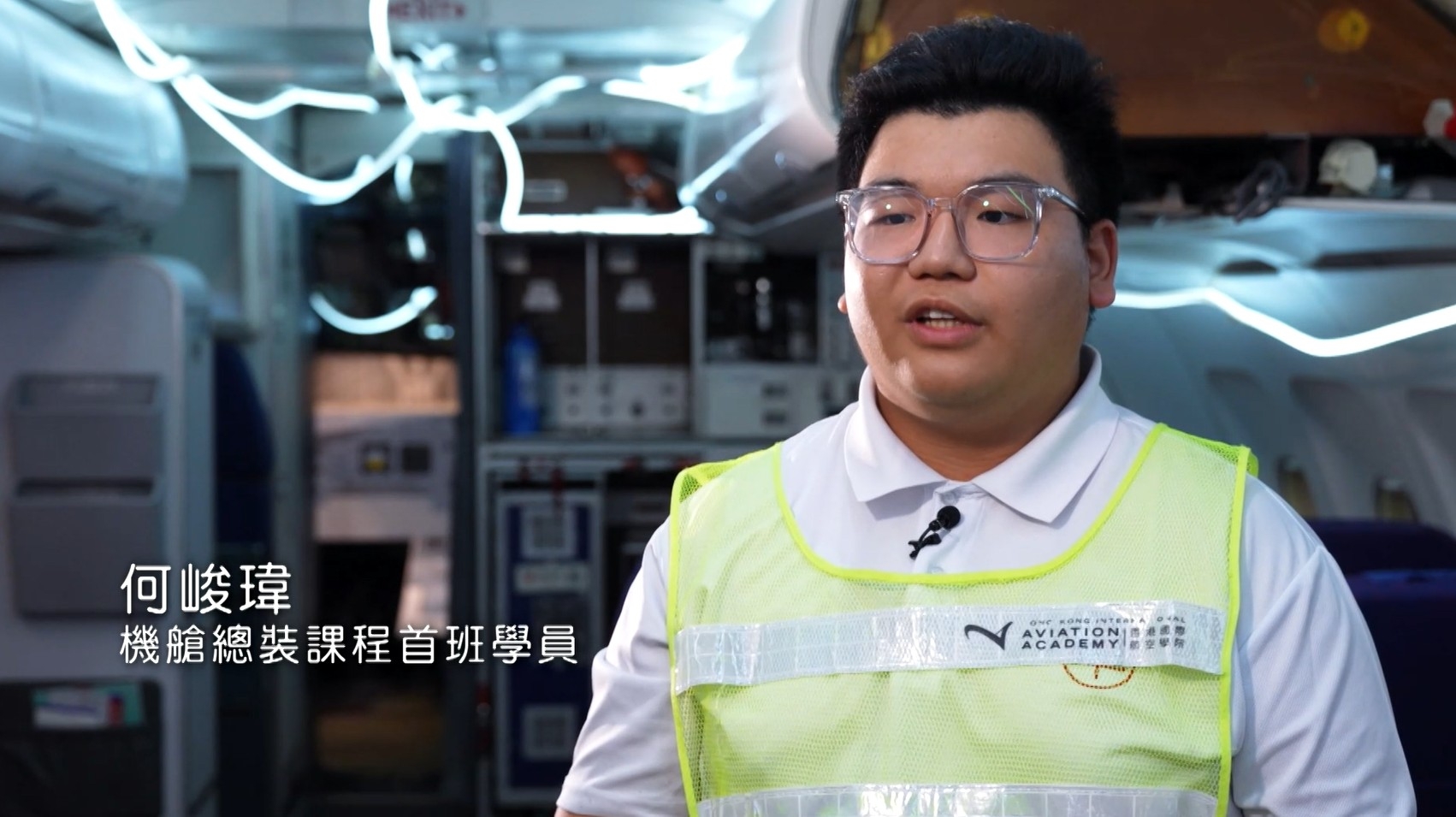 何峻瑋 - 機艙總裝課程首班學員,同樣分享進行培訓時的感受:「有機會在一比一的真實客機上,感受各樣機艙設備和部件,能夠加深對飛機的了解。」