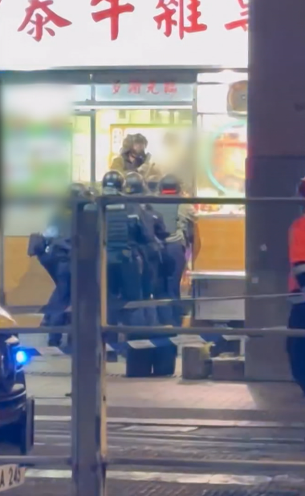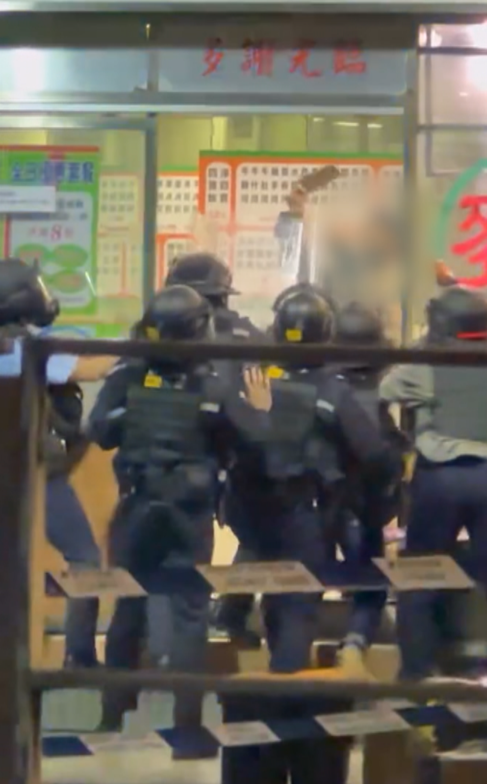 警員全副武裝,戴上頭盔並手持盾牌戒備,然後開門攻入店內,此時該名女子疑似受刺激,竟舉刀瘋狂斬向警員盾牌,警員以盾牌抵擋,現場目擊的人也嚇了一跳,不斷發出驚呼聲,最終該名女子被警員前後包抄制服,她涉嫌管有攻擊性武器、刑事毀壞及襲擊警務人員3罪被捕。