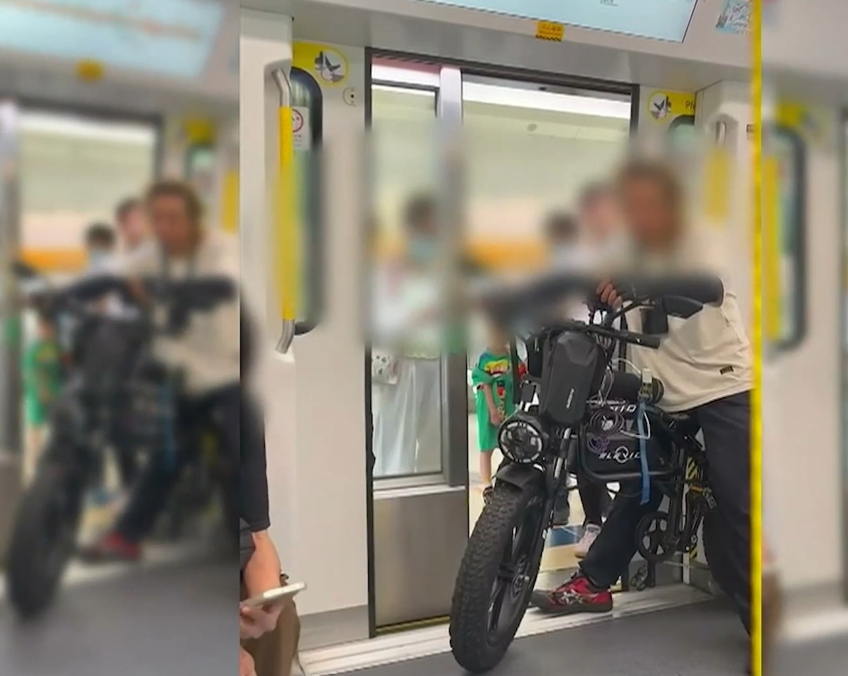 繼去年港鐵車廂出現了巨型電單車乘客後,觀眾黃女士向我們報料,指在屯馬線看到另一架「山寨版電單車」出現 !