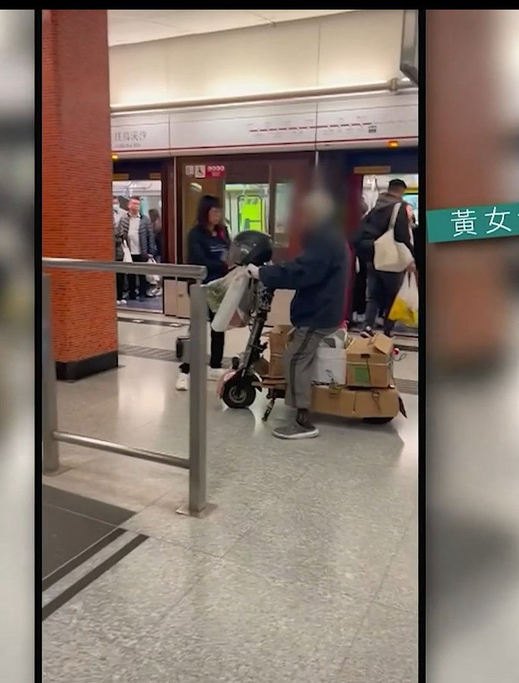 你無眼花呀!港鐵線月台車手駕到!片段所見,該位駕駛着「山寨版電單車」的老伯,旁若無人般在列車月台上左右飛馳,一個唔該,撞正上、下班繁忙時間,其實好危險。