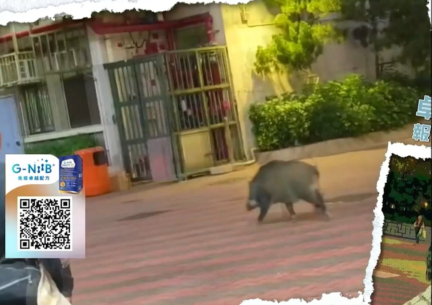 獨家直播三分鐘 市區屋苑籃球場野豬來訪|主持程程提醒遇見野豬做法