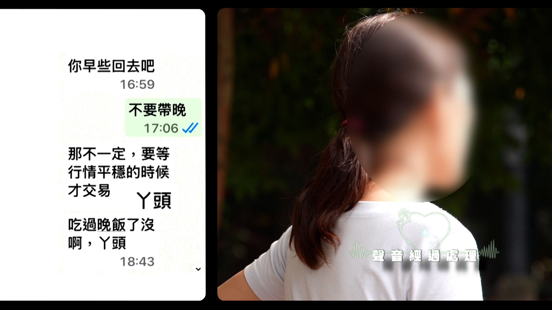 訪問途中,黃女士的丈夫來電。一個電話,足以證明覆水難收,戀人變成仇人。