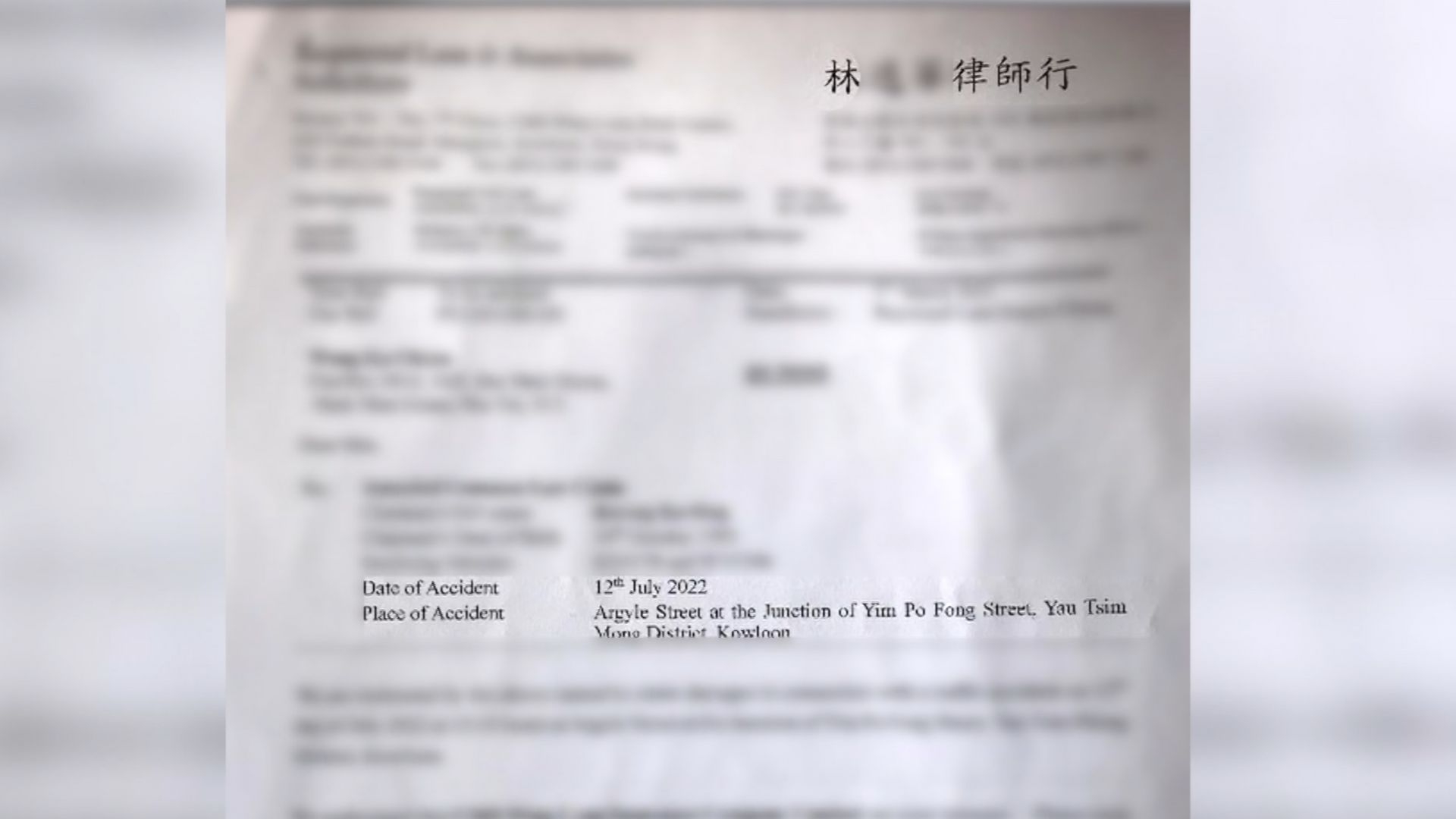但事隔一年多,王生收到又是林姓律師行的發出律師信,獲通知車上乘客向後面的士司機索償27.1萬元。乘客聲稱胸痛受傷,不能返工,要求賠人工損失和醫藥費。但王生指,文件中口供資料錯漏百出,質疑是否車上乘客本人。王生認為,這樣若索償成功,對駕駛者毫無保障。