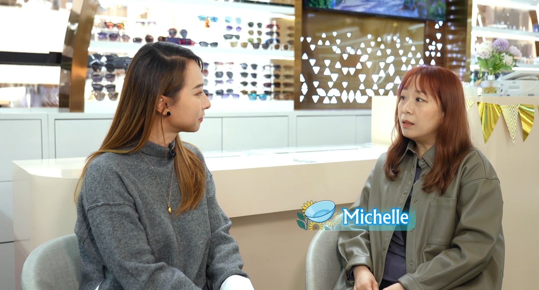 Michelle患有老花四年,一直有戴老花眼鏡,但她說好不方便:「之前我是配戴漸進鏡,戴着眼鏡上堂學跳舞,成日要反覆托起眼鏡,好不靚女。」