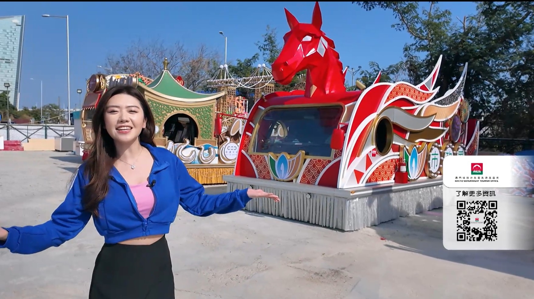 說到最令人期待的賀年活動,當然是花車匯演,主持即刻帶大家來感受一下萬馬奔騰的氣勢!
