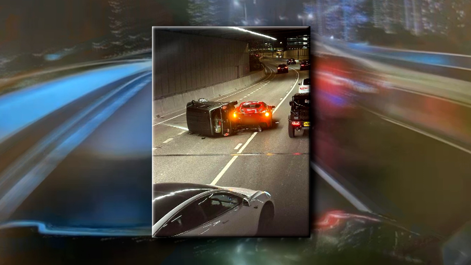 去年3月在官塘繞道有私家車與法拉利跑車相撞,原地翻滾多圈,車內人驚慌失措。