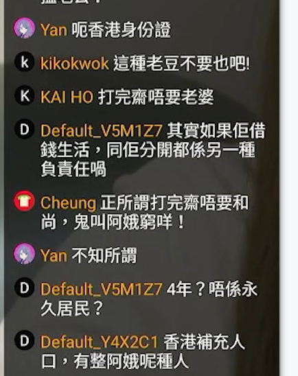 「呃香港身份證。」、「這種老豆不要也罷。」