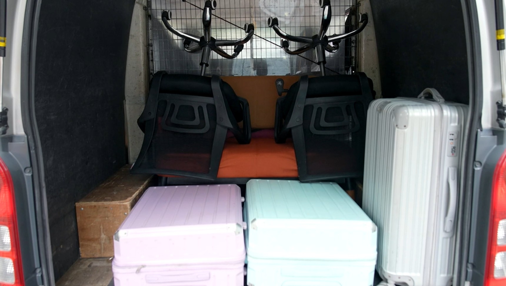 兩張辦公室電腦椅、一張小沙發,均是摺不埋的櫈腳,外型立體,而且並不輕,一般私家車車尾箱,根本放不下大件家具。如果搬屋還要加埋兩、三個行李箱,以及其他物品,真的一個人攪都唔掂!