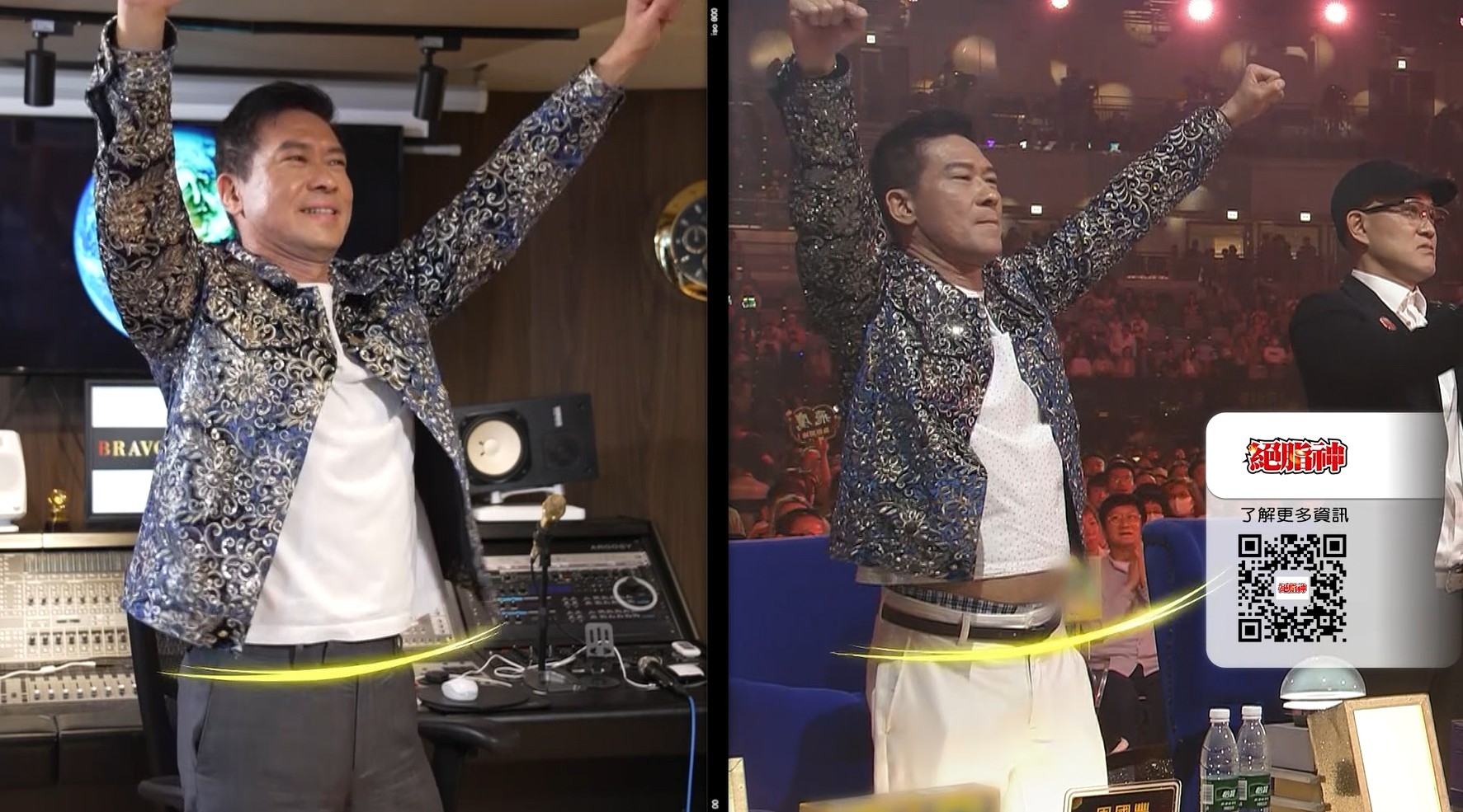 不過,添Sir不忘介紹令他成功Keep Fit的產品:「我兩個月減了12磅,『中年好肚腩』都消失埋!全靠食了這隻『絕脂神』,瘦身產品全港銷量No.1,屬天然瘦身營養補充品,並有五項專利成份,臨床實證減重高達12.8 公斤!」