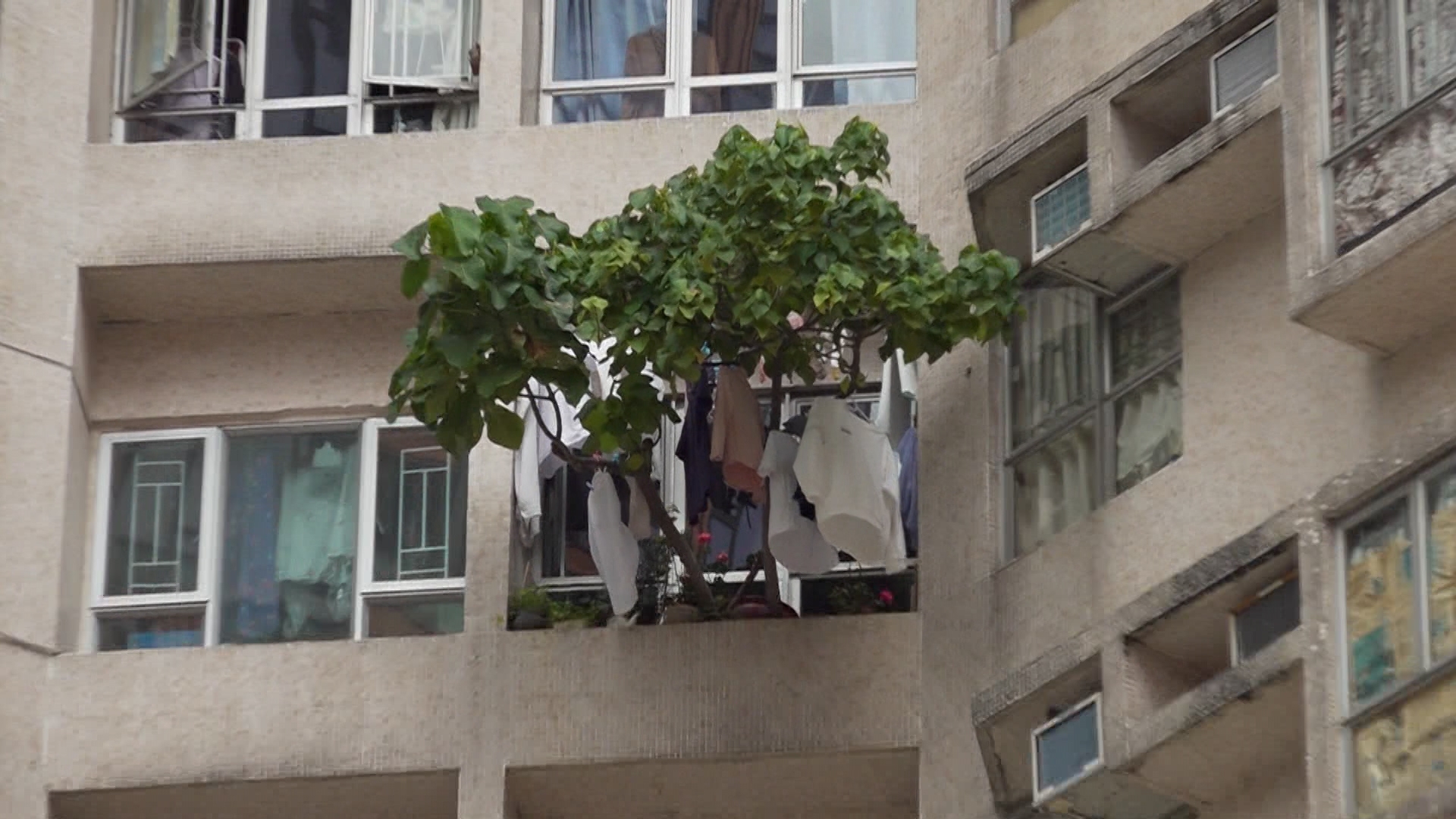 紅磡住宅窗外驚現空中森林?住戶不種花,選擇種樹,看起來很危險。