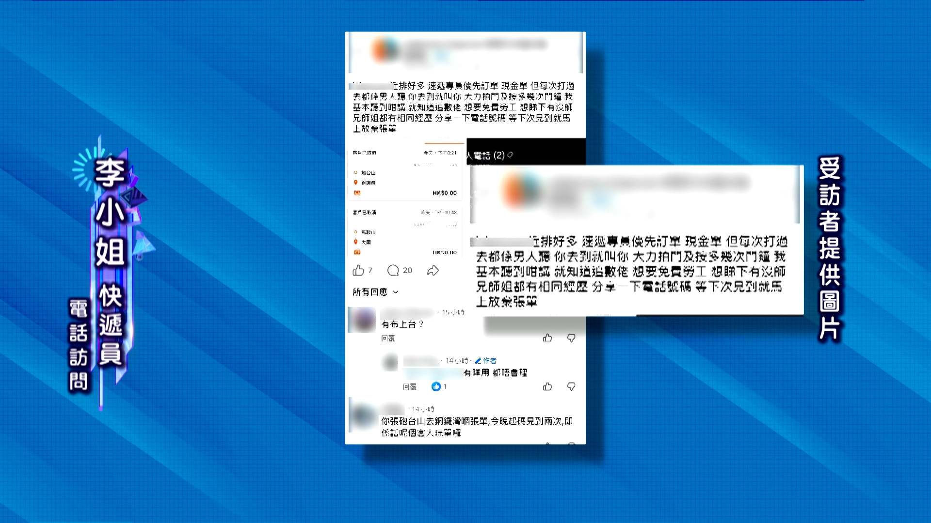 李收姐對東張主持黎寬怡表示,昨日收到優先派送訂單,比普通訂單薪金高幾成。地址位於太子道西地鐵站上蓋一棟大廈。由於訂單收送貨地址,和聯絡人資料齊全,她不虞有詐,但上去拍門和按門鐘都沒人回應。