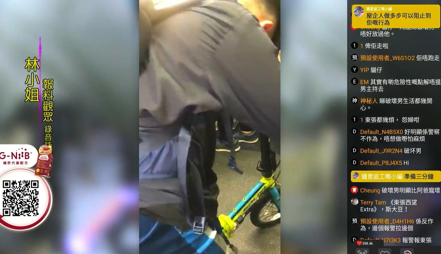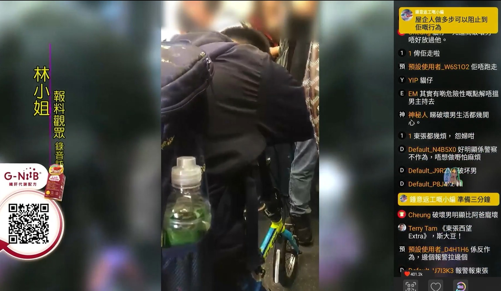 被學生哥撞來撞去,個別乘客也同樣受到滋擾。林小姐見狀,無奈拍醒對方,終於,學生哥亦將單車摺疊收好。