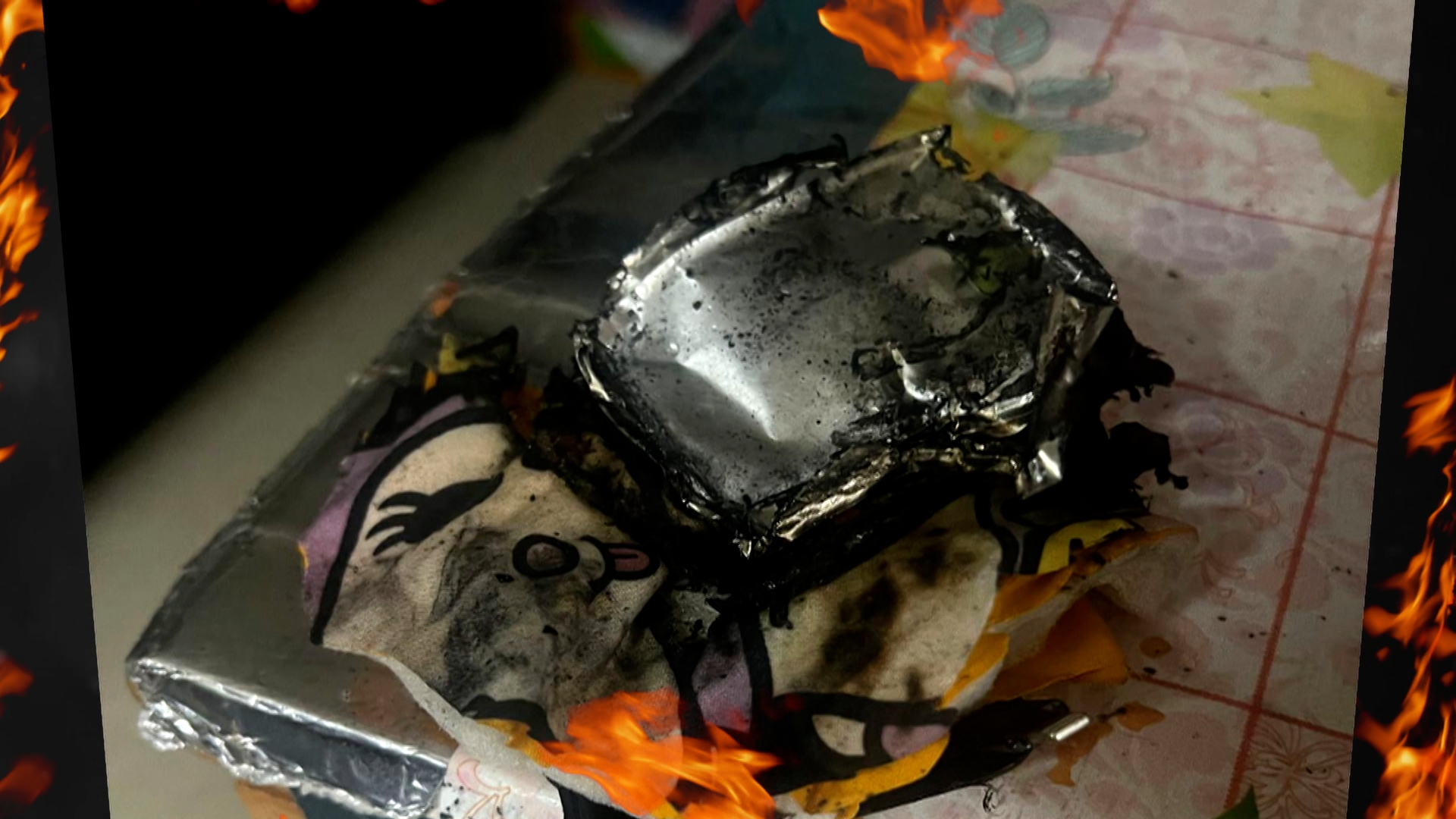 到本月9日凌晨,突然聽到爆炸聲,原來放在客廳,並非叉電中的的充電寶爆炸並且起火,火舌有半個人高。她立即用被蓋熄火,花了一會兒才救熄火。