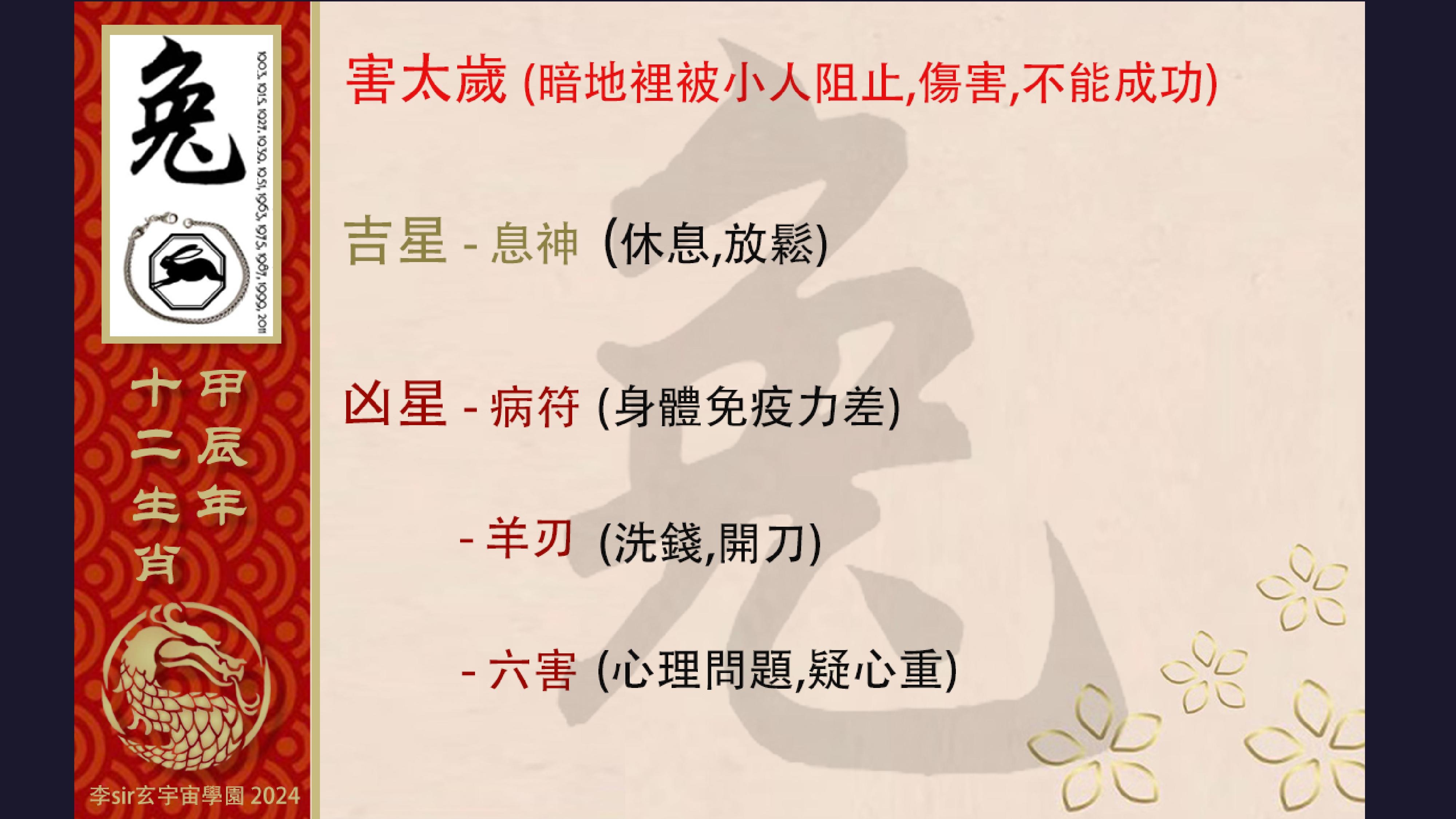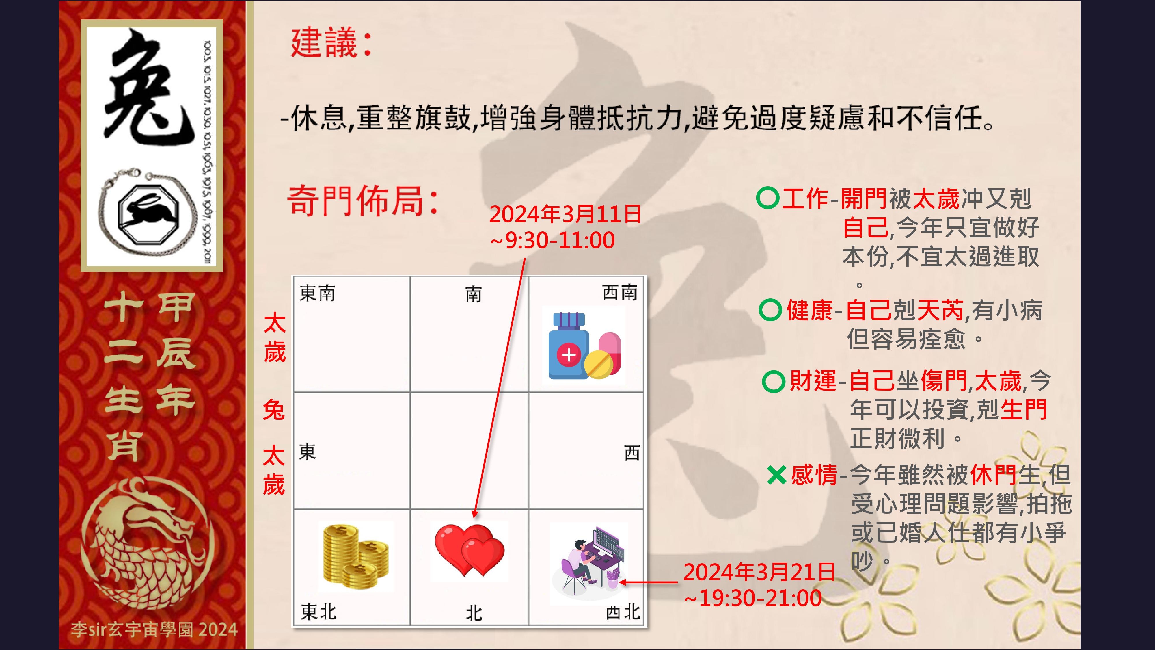 奇門遁甲 李Sir 2024龍年運程|12生肖運勢全面睇之肖兔