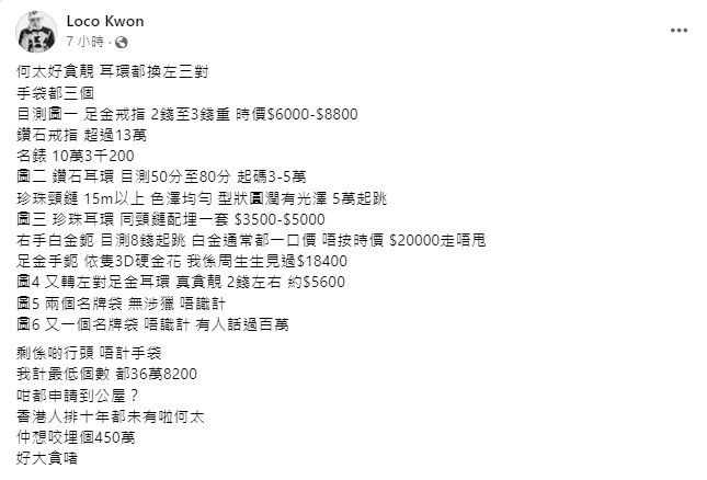 何伯在珠光寶氣「新何太」拖實下,力數5名子女不孝。據稱他們因為不滿老父與相識一個多月、來自內地的「新何太」結婚,小女兒甚至從與父親聯名的戶口中調走了$450萬元。何伯對此感到痛心和困惑。事件惹網民熱議,facebook「大埔 TAI PO」網民Loco Kwon非常眼利,他指出: