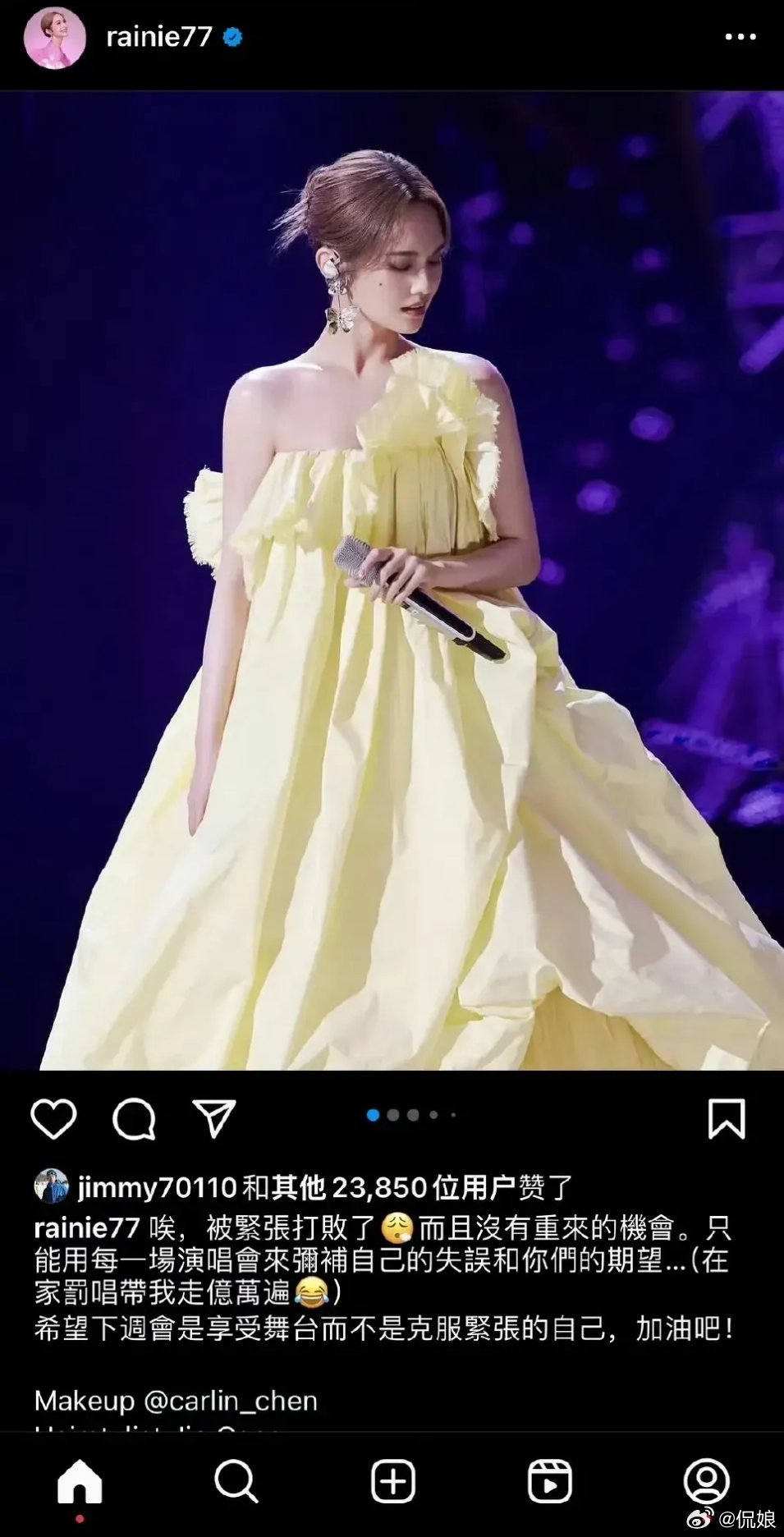 節目播出後,楊丞琳凌晨在IG寫下自己的心聲,「唉,被緊張打敗了,而且沒有重來的機會。只能用每一場演唱會來彌補自己的失誤和你們的期望…在家罰唱帶我走億萬遍」,並喊話希望下週的自己是享受舞台的,而不是克服緊張的自己。