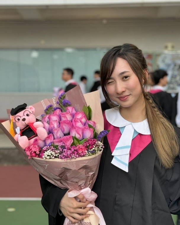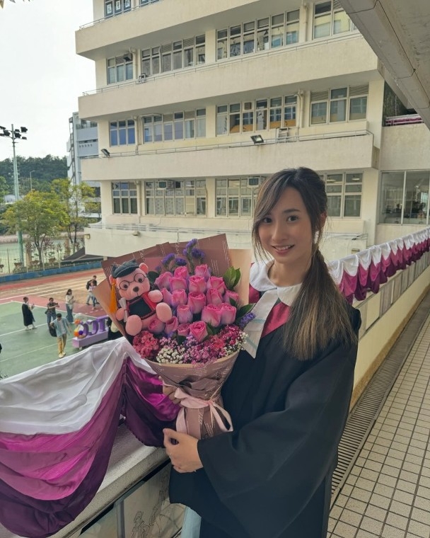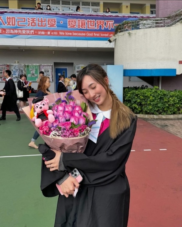 Yumi懶理最近是是非非,更新社交平台並開心寫上:「今日我畢業了🥰🎓向所有支持我的老師和朋友,說聲謝謝你們我會永遠都記得,這段難忘的中學時光🤍即將開始新的篇章 新的挑戰 加油鍾柔美💪🏻」相片所見,Yumi身穿畢業袍,仲有靚靚粉紅花束,在學校留影畢業相。就連近日「潛水」的好姊妹炎明熹,都蒲頭「點讚」,果然係好閨密!