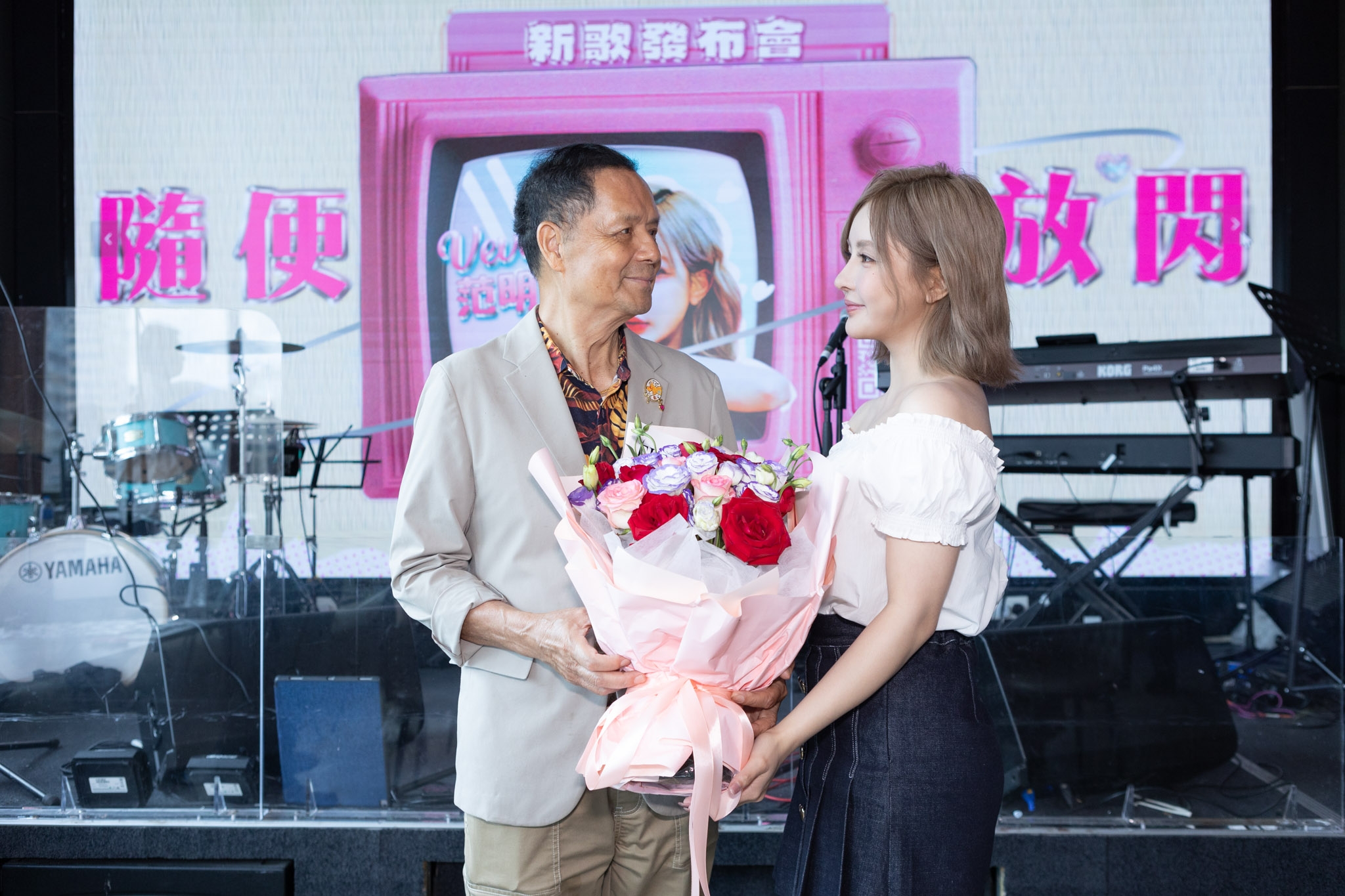 范明熙(小V)表示非常榮幸能邀請到各位前輩老師現身出席她的首歌新歌發布會,一同見證她首支派台歌的誕生。而面對前輩們的一致好評,她更淚灑當場,非常感動。