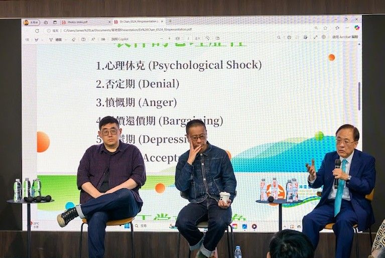 子華變了,時間也會悄然改變每個人對人生的看法。陳茂賢的真情剖白,看來與座談會上陳仲謀醫生以精神科專業角度剖析哀悼的六個階段:心理休克、否定期、憤慨期、討價還價期、抑鬱期、接納期不謀而合,換句話說,這些時期雖然極度痛苦、難過,但絕對可以過渡的。