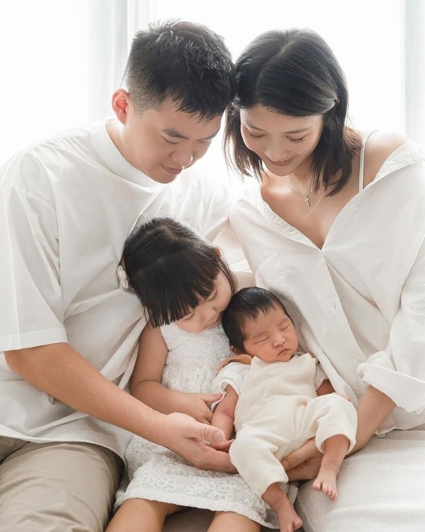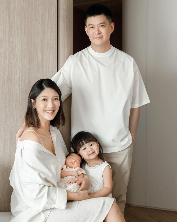 藝人余香凝上月誕下小兒子,一家四口幸幸福福,湊成「好」字,好開心!
