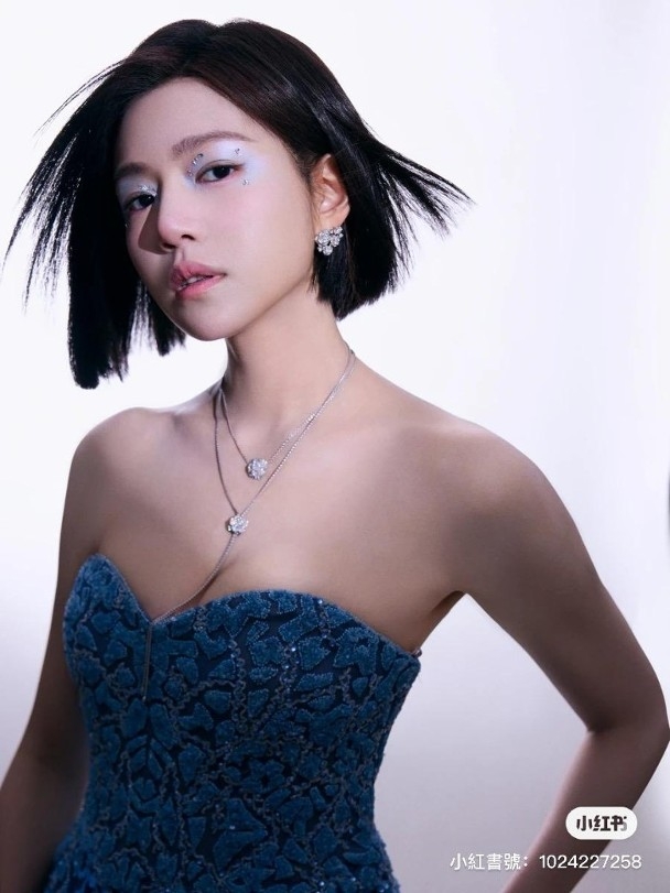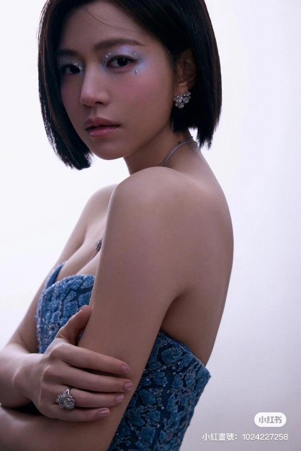 陳妍希穿上藍色花花絨面低胸Tube Dress,散發出性感與冷艷魅力,最突出是女神以一頭全新清爽短髮示人,引起了網民熱議,紛紛留言稱:「短髮有氣質」、「好瘦呀!太美了!」、「剛想說這個模特兒很像陳妍希,沒想到是本人。」