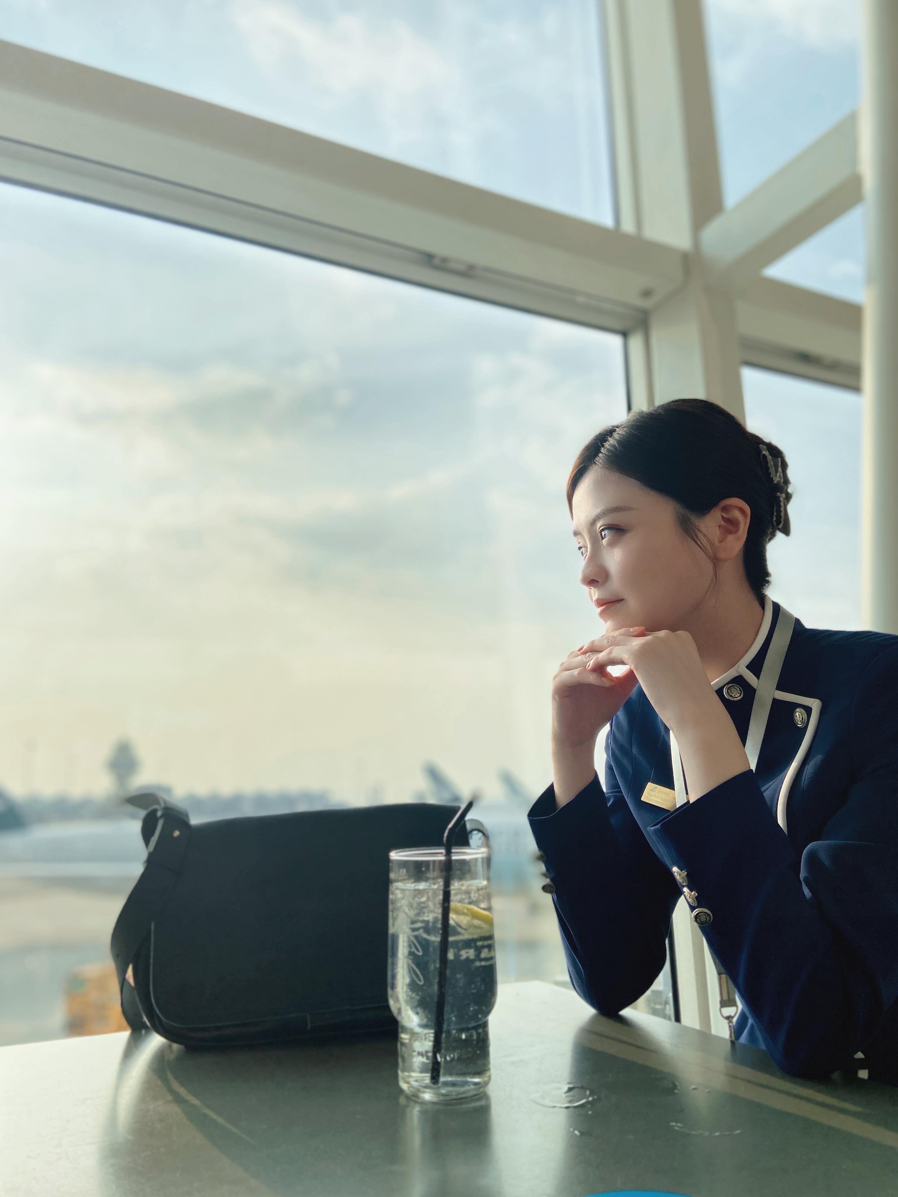 先說蘇可欣(Eunice),曾參與2016香港小姐競選並躋身20強的Eunice,參選港姐前曾任職了兩年半空姐,於劇集宣傳期間透露有意回歸空姐行業的Eunice,在劇中既是演員亦是空姐Look顧問,思貝早前於直播期間便透露蘇可欣拍攝期間除了與眾女演員大方分享「空姐經」,更是眾人的「髮型顧問」,先後教曉思貝及劉穎鏇等小花「空姐盤髻大法」,是劇集靚靚空姐Look的重要功臣之一。問到Eunice當初為何投身空姐行列,她笑言是受無綫經典劇《衝上雲霄》啟發:「好老套地真係因為《衝上雲霄》而想做空姐,應該話佢係呢個職業夢嘅種子。到有一次好偶然見到個女仔著住空姐制服加大褸,好有氣質好端莊咁,令我更立志要加入呢個行業。」