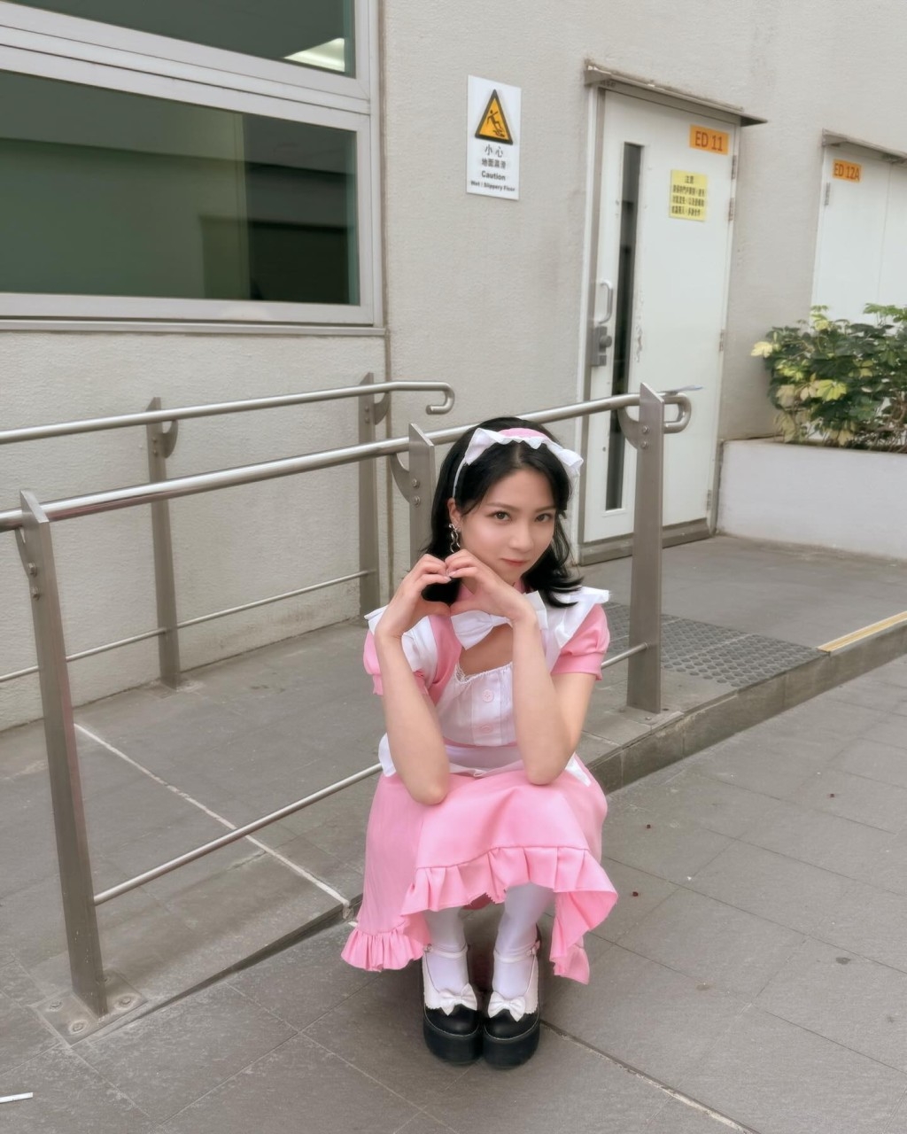 近日,陳曉華更新社交平台,更分享幾張超可愛女僕裝扮的造型,可愛感爆燈!非常吸Like。陳曉華的女僕造型背景似在電視城,為了增強可愛感,陳曉華更蹲在地上,造型激似可愛貓仔。而擁有高䠷身形的她,不用攝影效果已可盡騷長腿,好養眼!