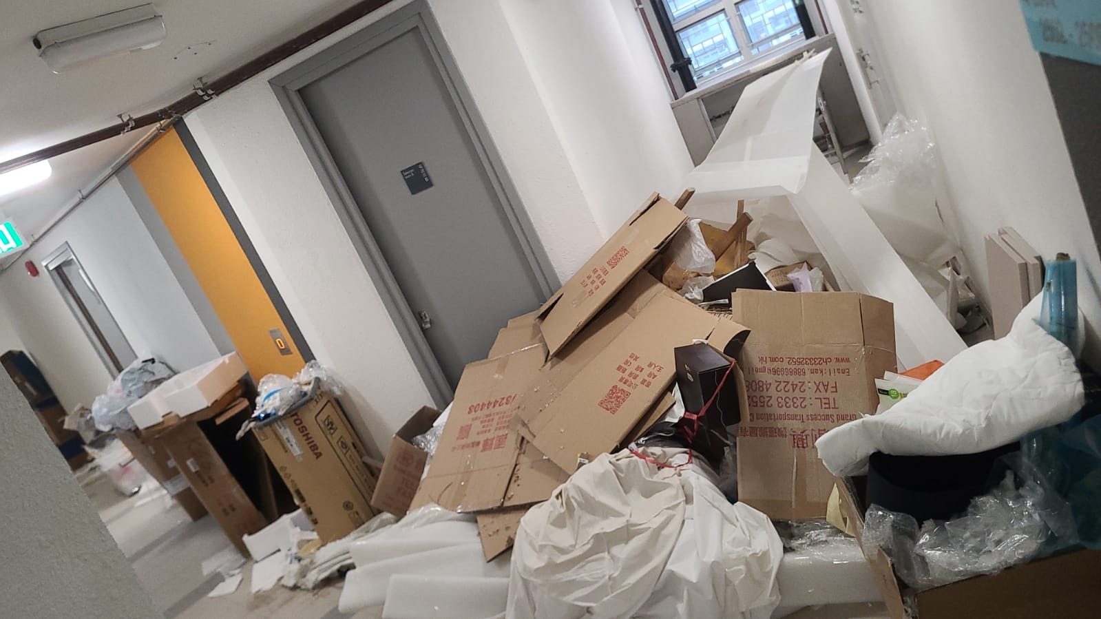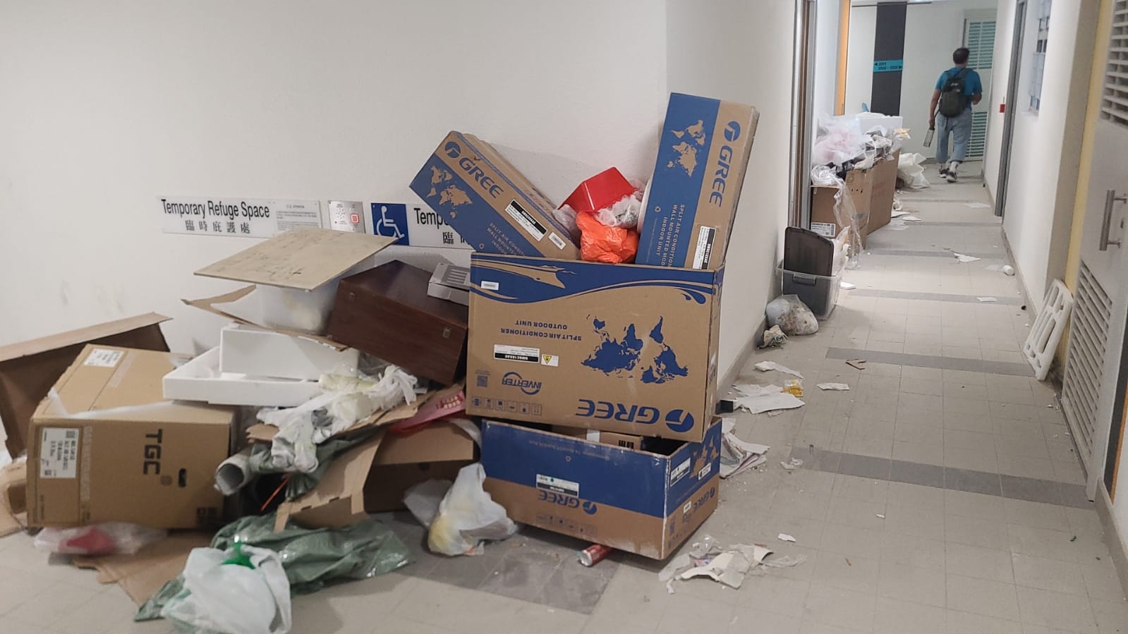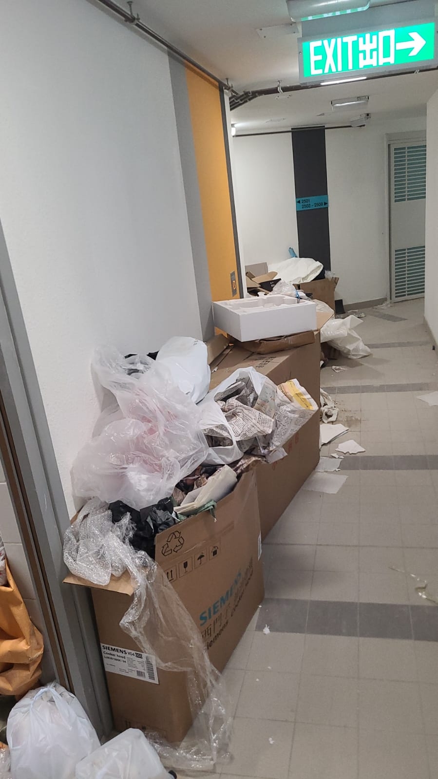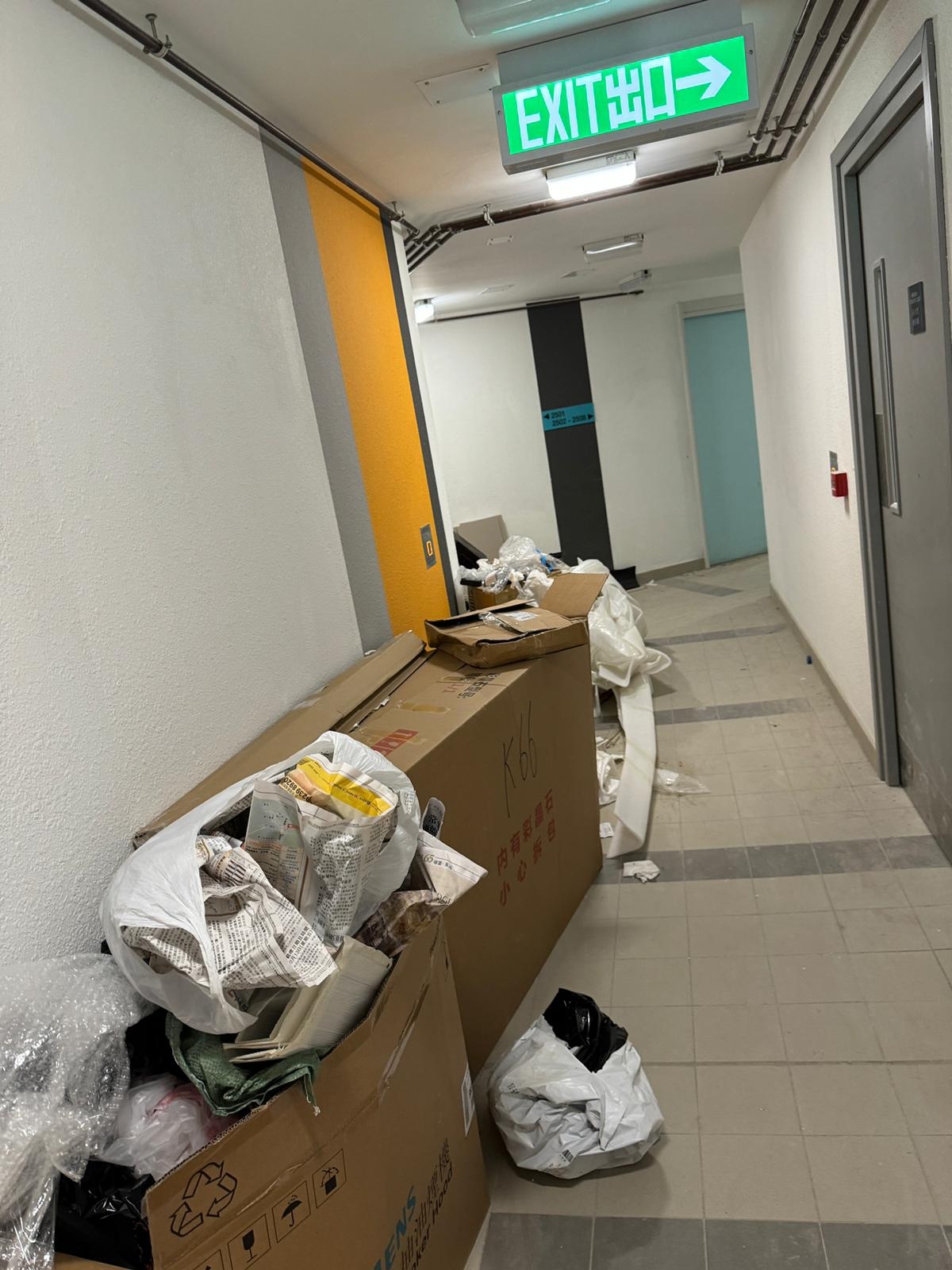 觀眾提供的相片可見,現場垃圾堆積如山,甚至起火,觀眾接受「東張+」記者訪問時說,啟鑽苑於三月入伙,目前很多住戶都在裝修中,所以產生很多建築廢料,本來通告表明,要建築工人將建築廢料運往垃圾站處置,但是由於管理欠佳,垃圾通常都堆積在各樓層,情況非常嚴峻,已先後兩次引發火警。
