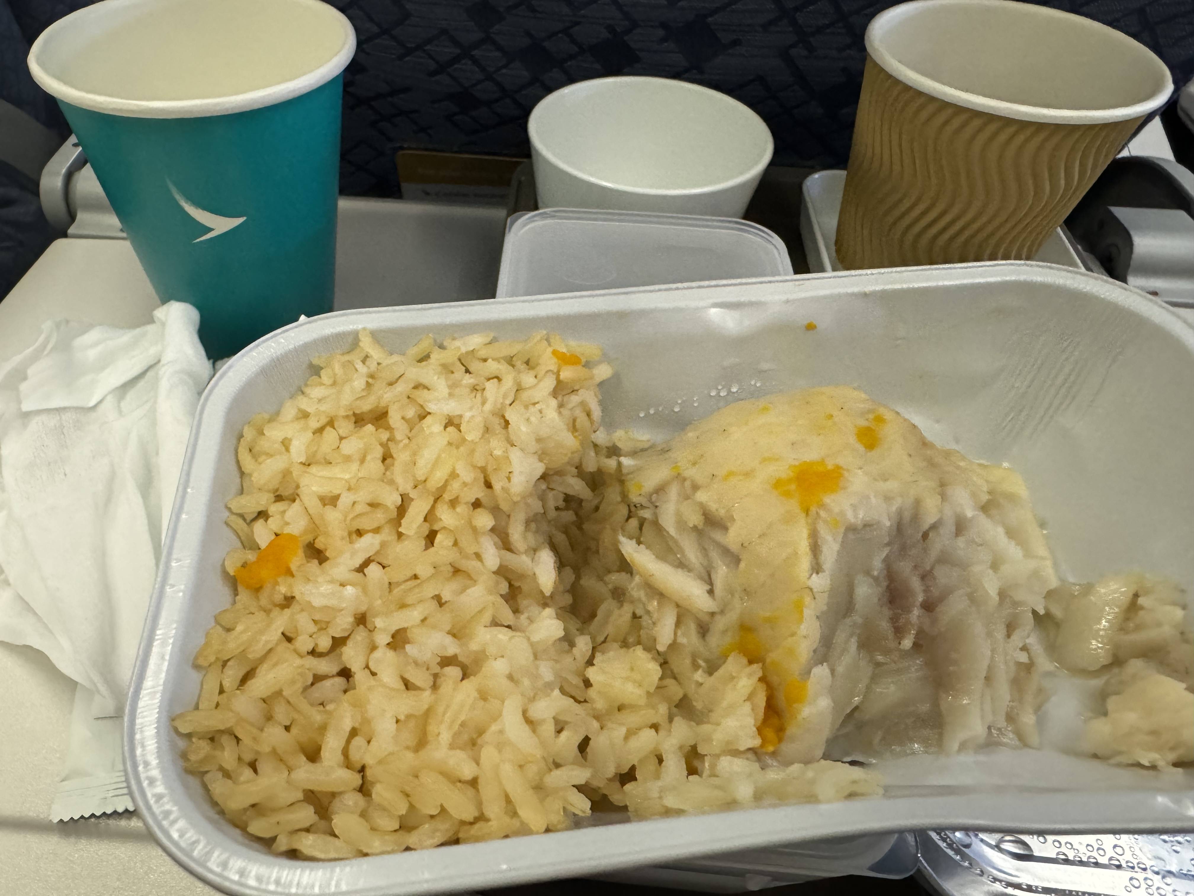謝小姐指,在登機前已經選定「低脂餐食」(low fat meal),亦是航班中唯一一個選定此餐食的乘客。當餐點送抵座位後,謝小姐發現飛機餐中的魚未徹底煮熟,但此時自己已經吃了一些。