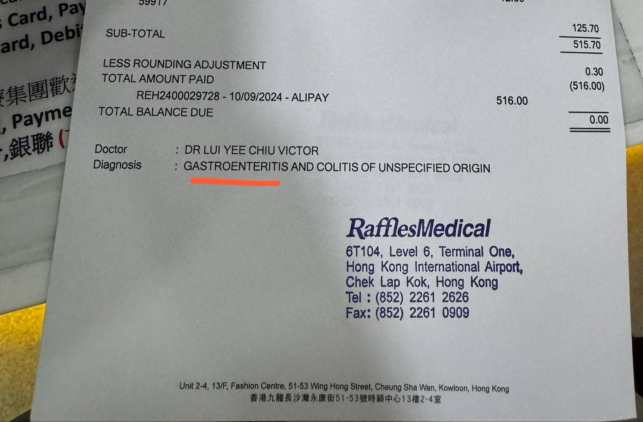 未幾,謝小姐開始感到不適,除了肚瀉之外,亦有一點「暈船浪」的感覺。她當時有尋求機艙服務員提供協助,國泰航空亦有安排一名地面人員於機場閘口協助。她指,當時地面職員帶領自己前往機場的診所求診,但需要由自己支付所有費用。
