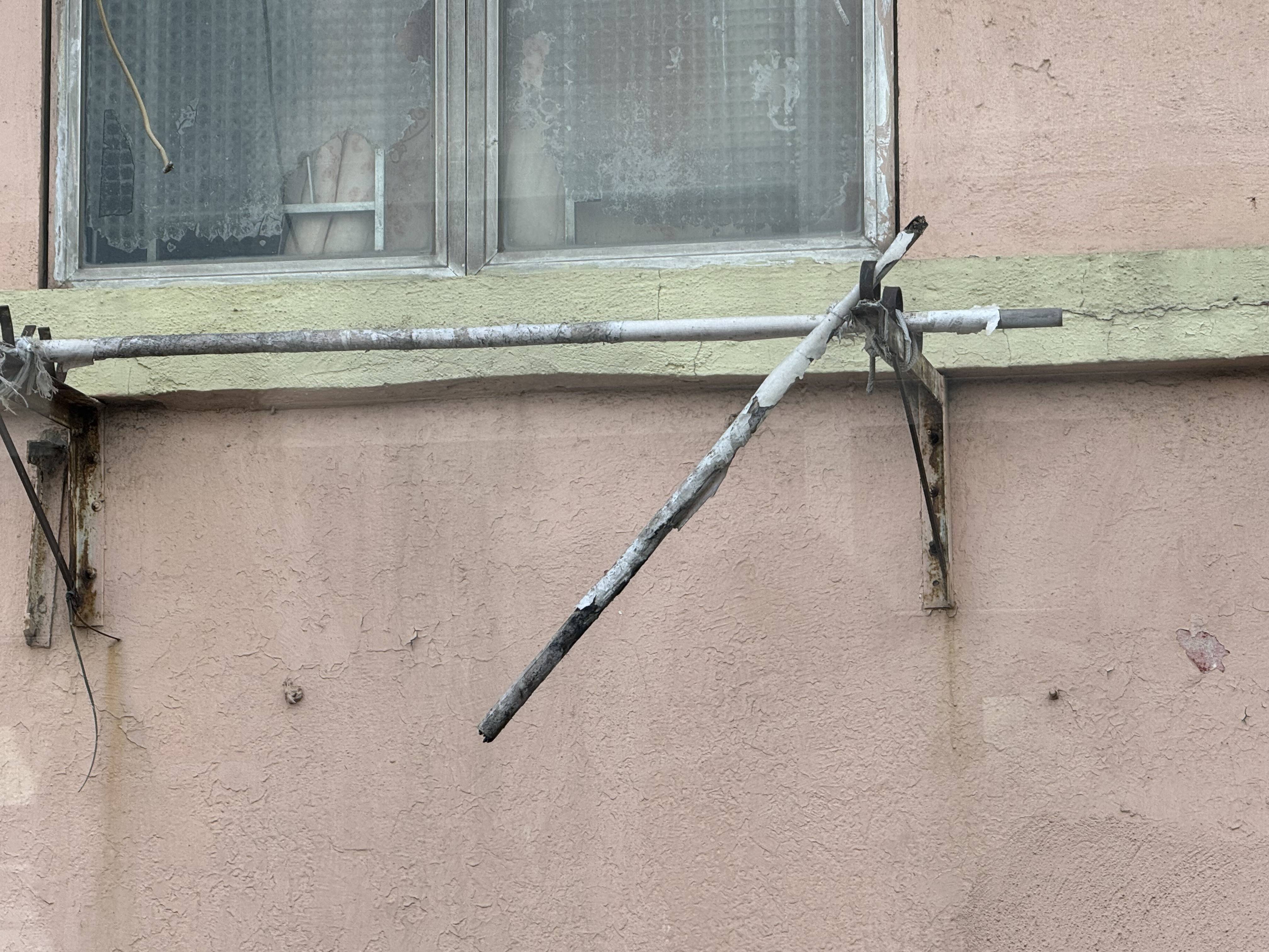 觀眾陳太太今早乘巴士經過土瓜灣木廠街,赫見一條晾衫竹懷疑斷開,但仍掛在高空。
