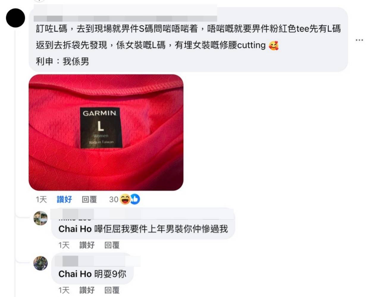 陳小姐強調自己不是唯一一個苦主,網上有不少跑手同樣中招訴說自己選手包有問題,最離譜是明明訂好的尺碼,第一日已經缺貨,例如訂了中碼的,就給細碼或者加細碼,有外籍夫婦被迫要了加細碼,甚至有男人被迫要收女裝,所以懷疑主辦方「喺度清上年活動的蟹貨」、「賺到盡」。