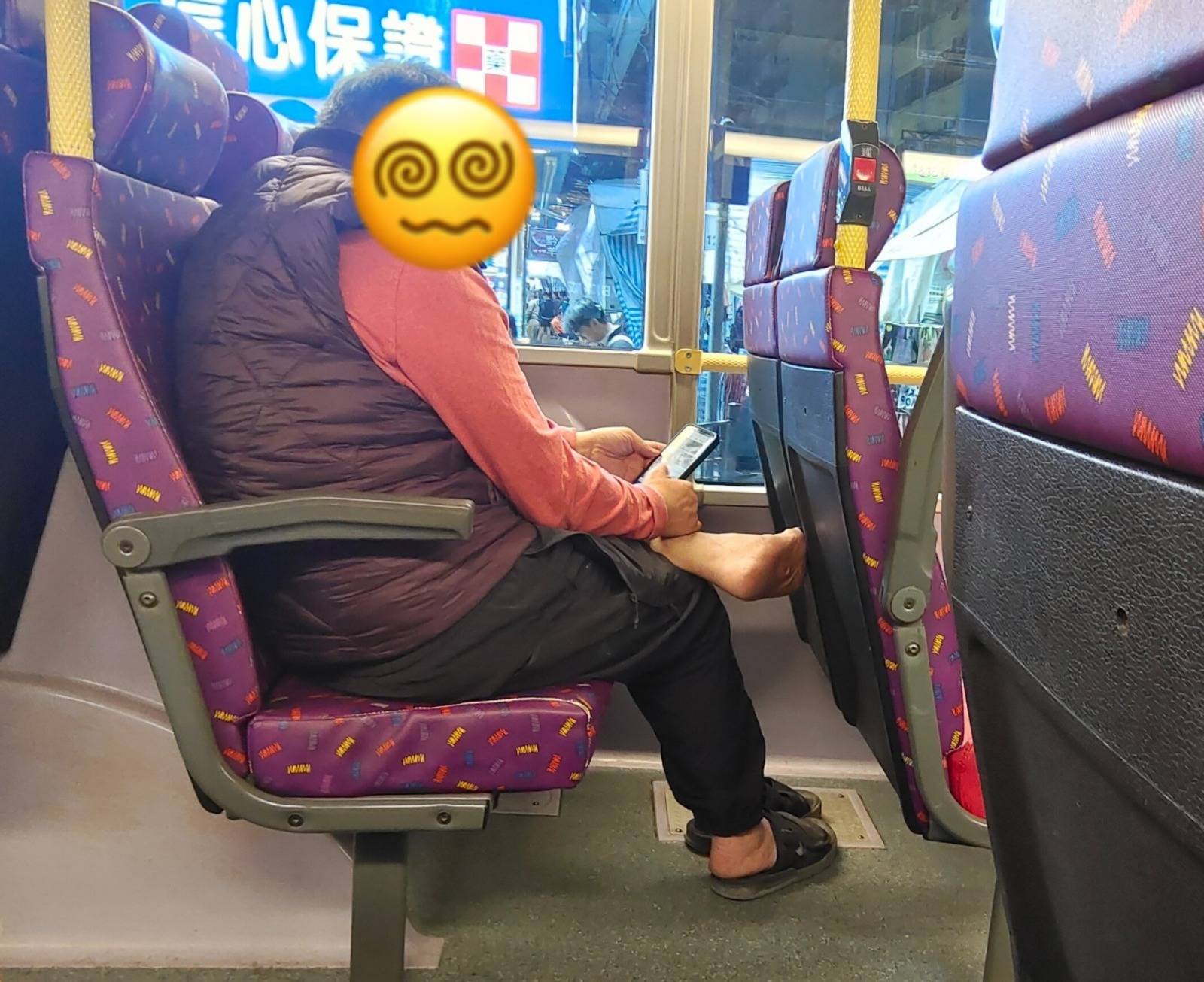 田先生說,當時阿伯大大聲聲開手機看笑片,其他乘客被迫忍受噪音,加上他赤腳這樣擺放,令人也不敢坐在他旁邊。