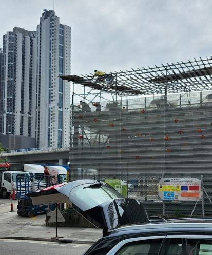 觀眾陳先生提供相片,跟「東張+」記者說星期日經過荃灣海盛路停車場時,看到有工人在竹棚高空工作台頂工作。陳先生說初時只看到一個工人沒有佩戴安全帶,已覺得很危險,後來走近,再看到好幾個工人全部都沒有佩戴安全帶,認為這樣非常危險。