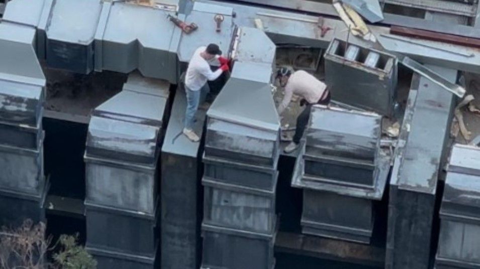 觀眾報東張片段可見,幾名工人在藍田安田街一間學校高空工作時,身上未見有任何安全措施,看來的確危險!