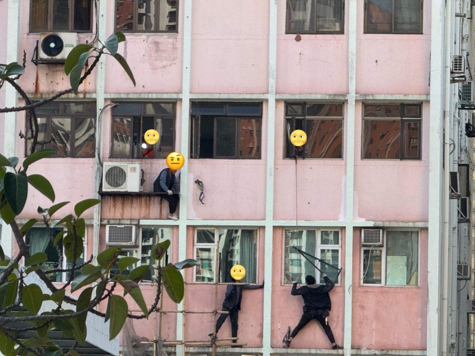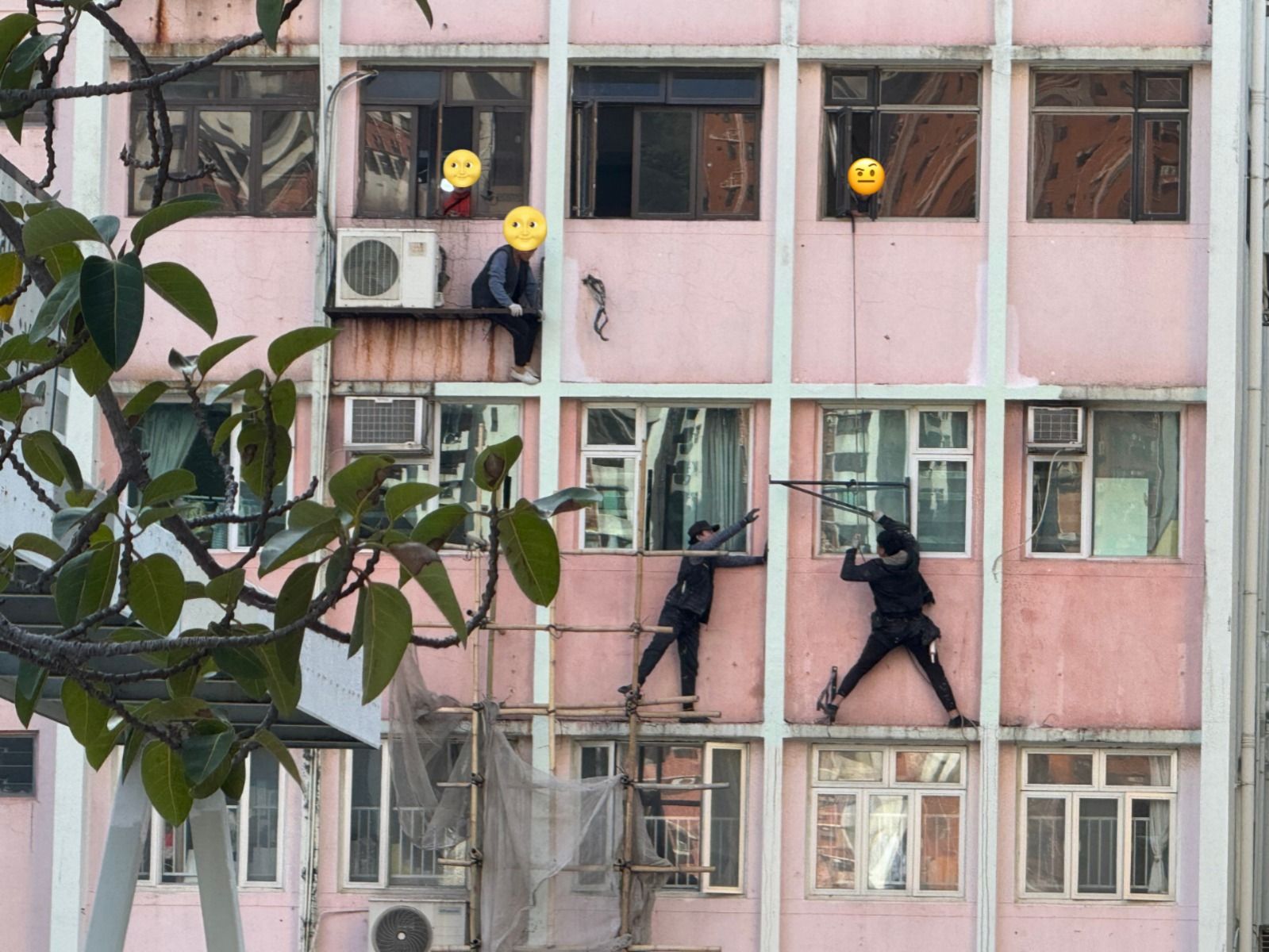 觀眾Judy周六報東張,說在銅鑼灣看到有外牆工人這樣工作: