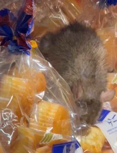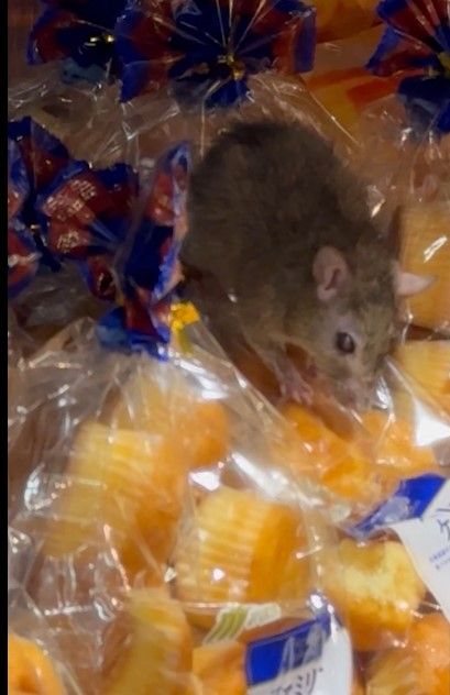 觀眾Daniel拍攝的片段可見,一隻巨型老鼠竟然咬穿蛋糕包裝袋,吃得津津有味,最後幾乎吃掉了大半個蛋糕仔。