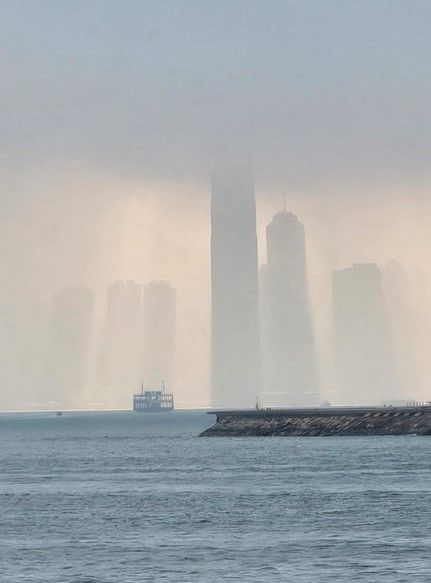 情人節當天很大霧,原來維港出現海市蜃樓奇景!難道是寓意愛情也是「幻象似的愛情」?