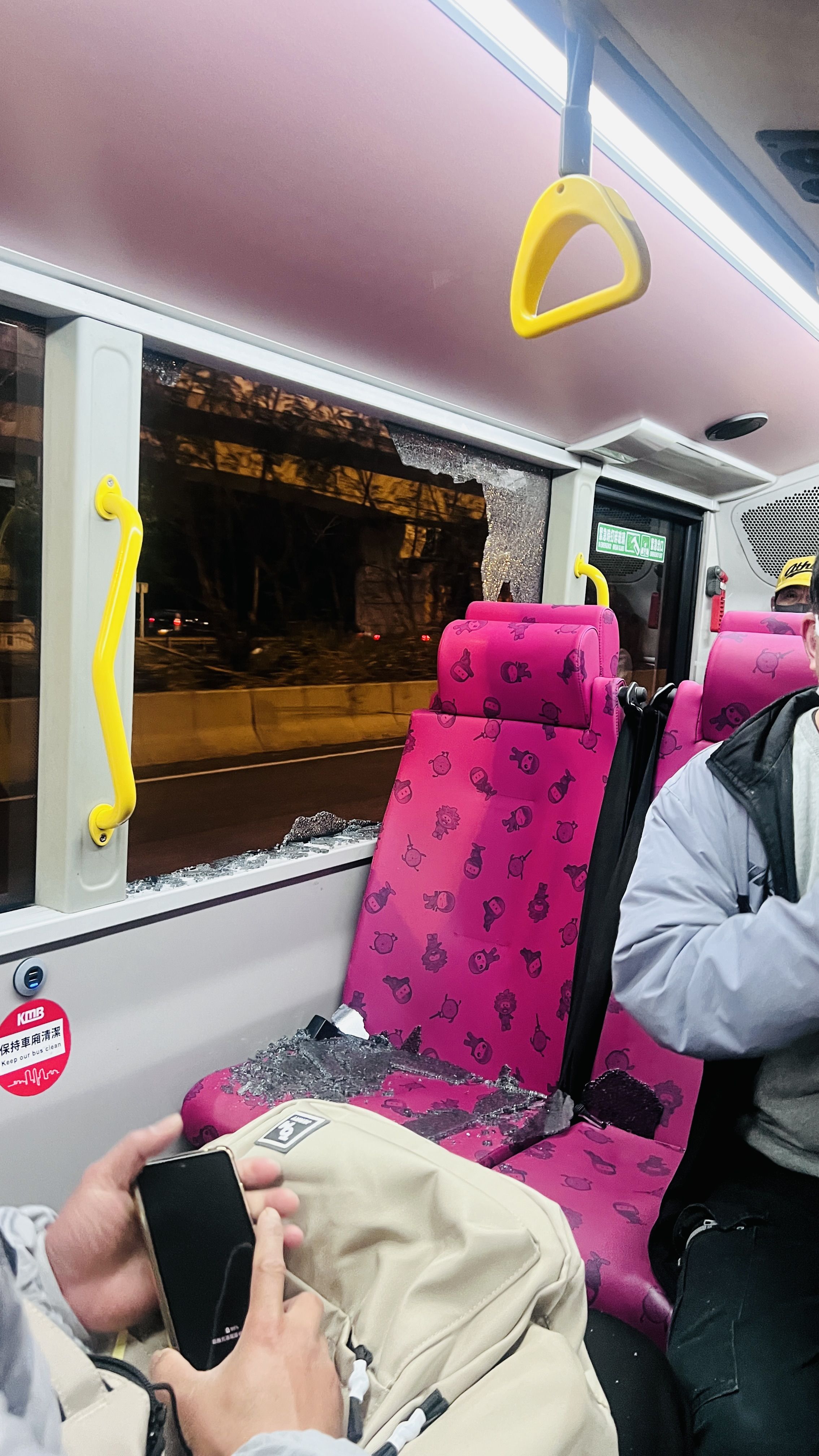 陳先生指,當時車上突然有一聲巨響,原來是車廂下層的玻璃窗爆裂,所幸的是坐在窗邊的乘客並沒有受傷。