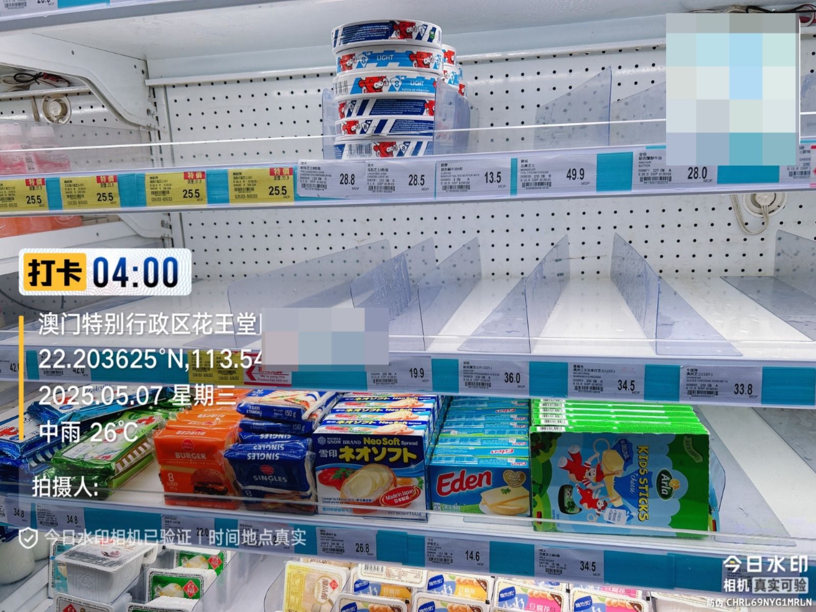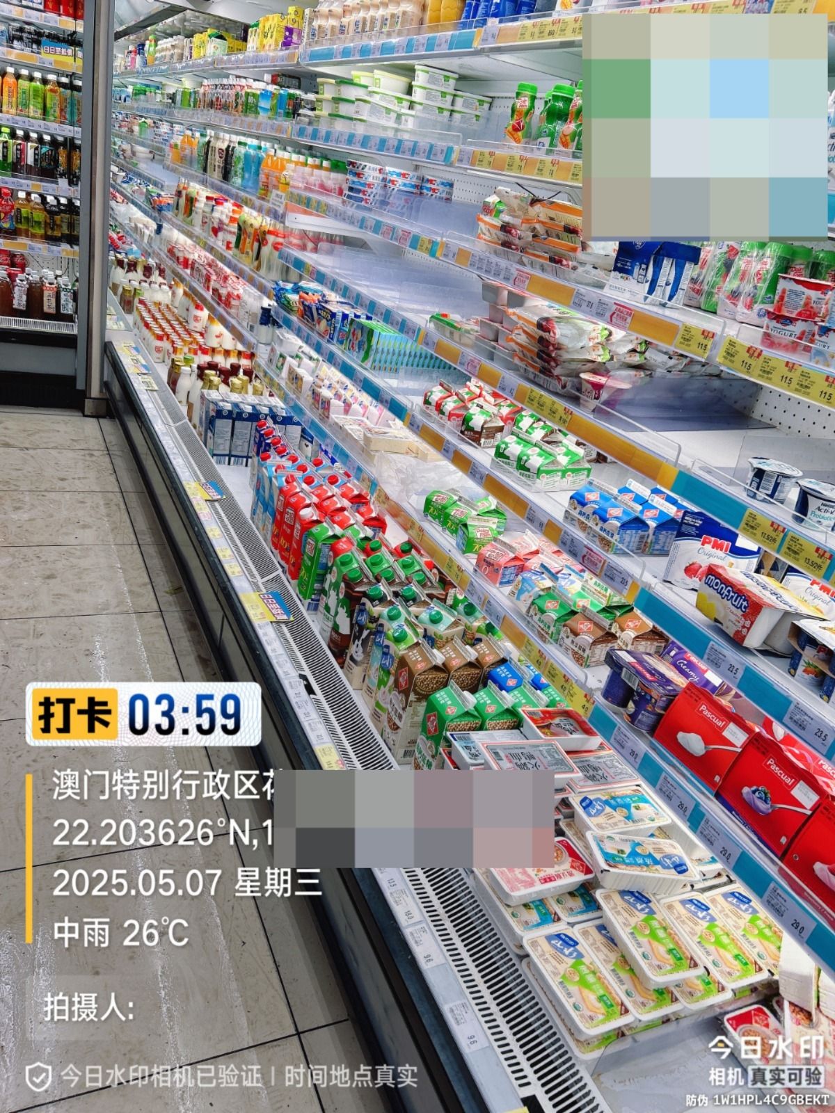 澳門觀眾劉先生向東張西望報料,說今早凌晨四時左右,發現位於羅白沙街的一間超級市場雪櫃溫度竟然高達攝氏24度,他說:「雪櫃內有芝士、牛奶完全沒有雪藏,擔心消費者購買之後食物中毒。」